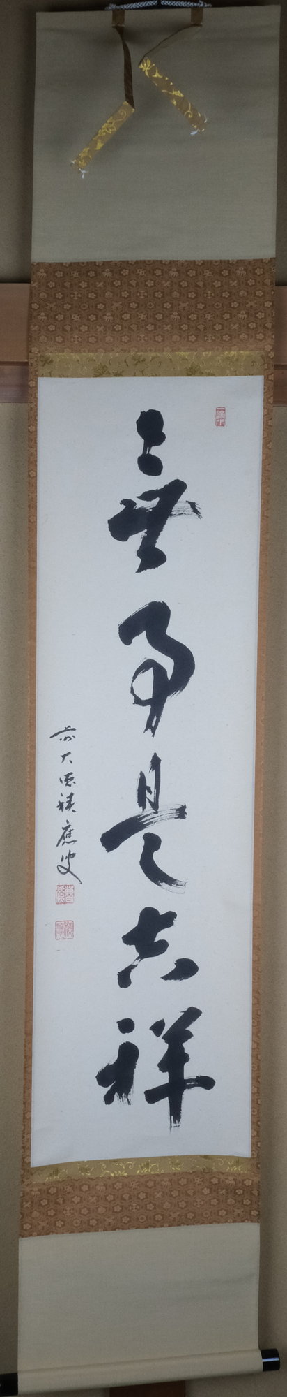 U-kz02748 【出物】 掛軸 一行「無事是吉祥」 福本積應