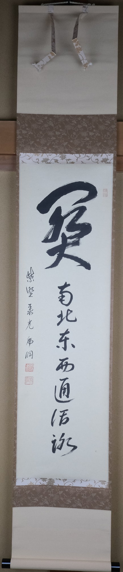 U-kz02749 【出物】 掛軸 一行「關(関) 南北東西通活路」 小野澤虎洞