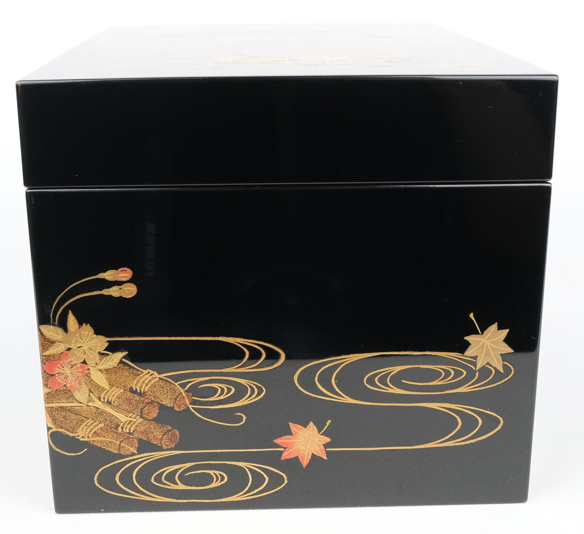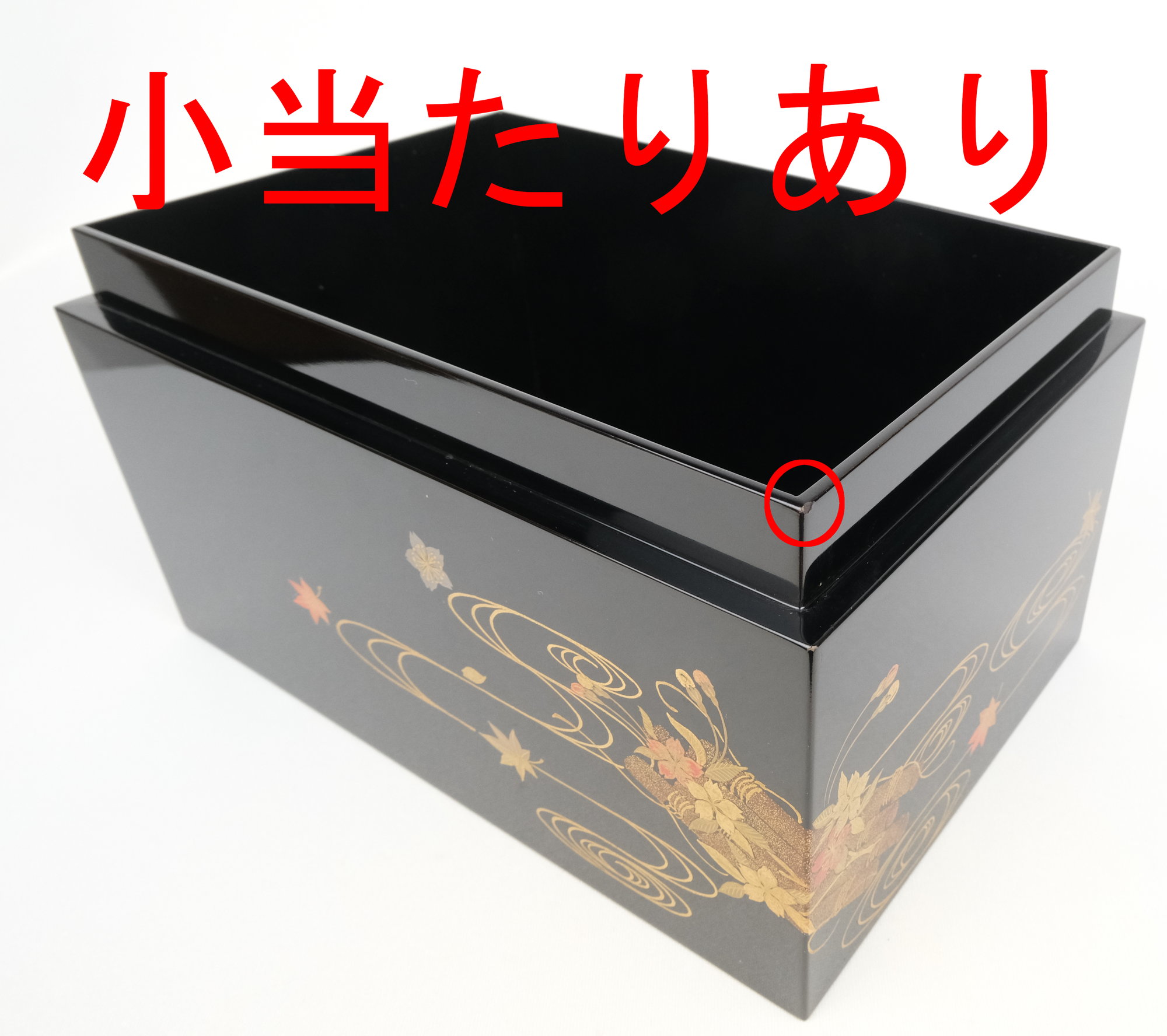 | 寸法 | 茶箱:幅14.6cm × 奥行21.5cm × 高さ13cm 棗:直径6.7cm 高さ4.5cm 香合:直径4.8cm 高さ1.1cm |