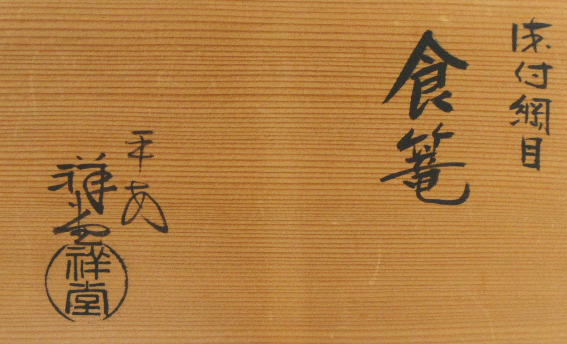 表千家千家でよく見る染付の網目食籠です。ほとんど使った跡が見られず綺麗な状態です。焼き物の食籠の時期を通して使いやすいお道具です。