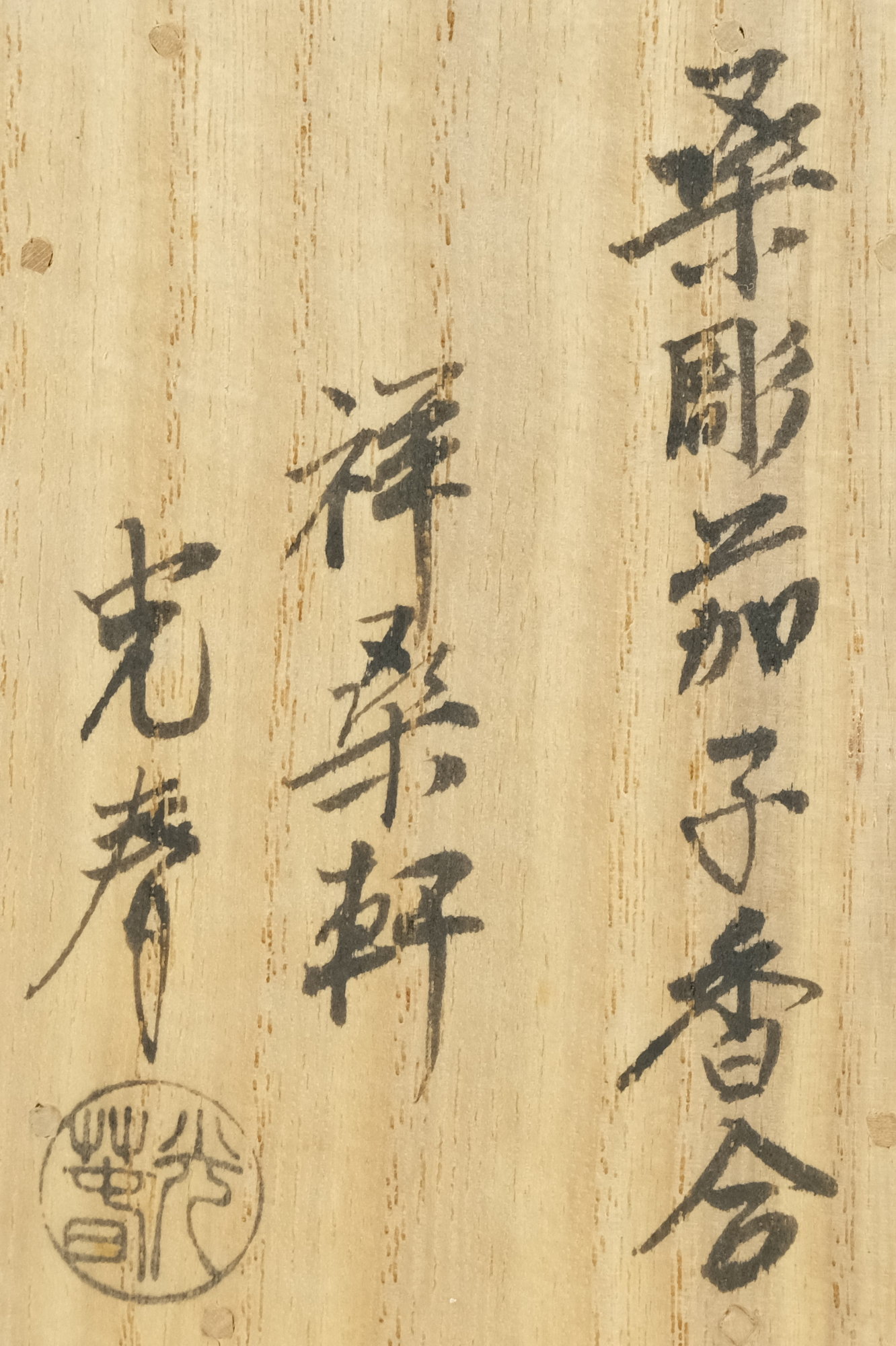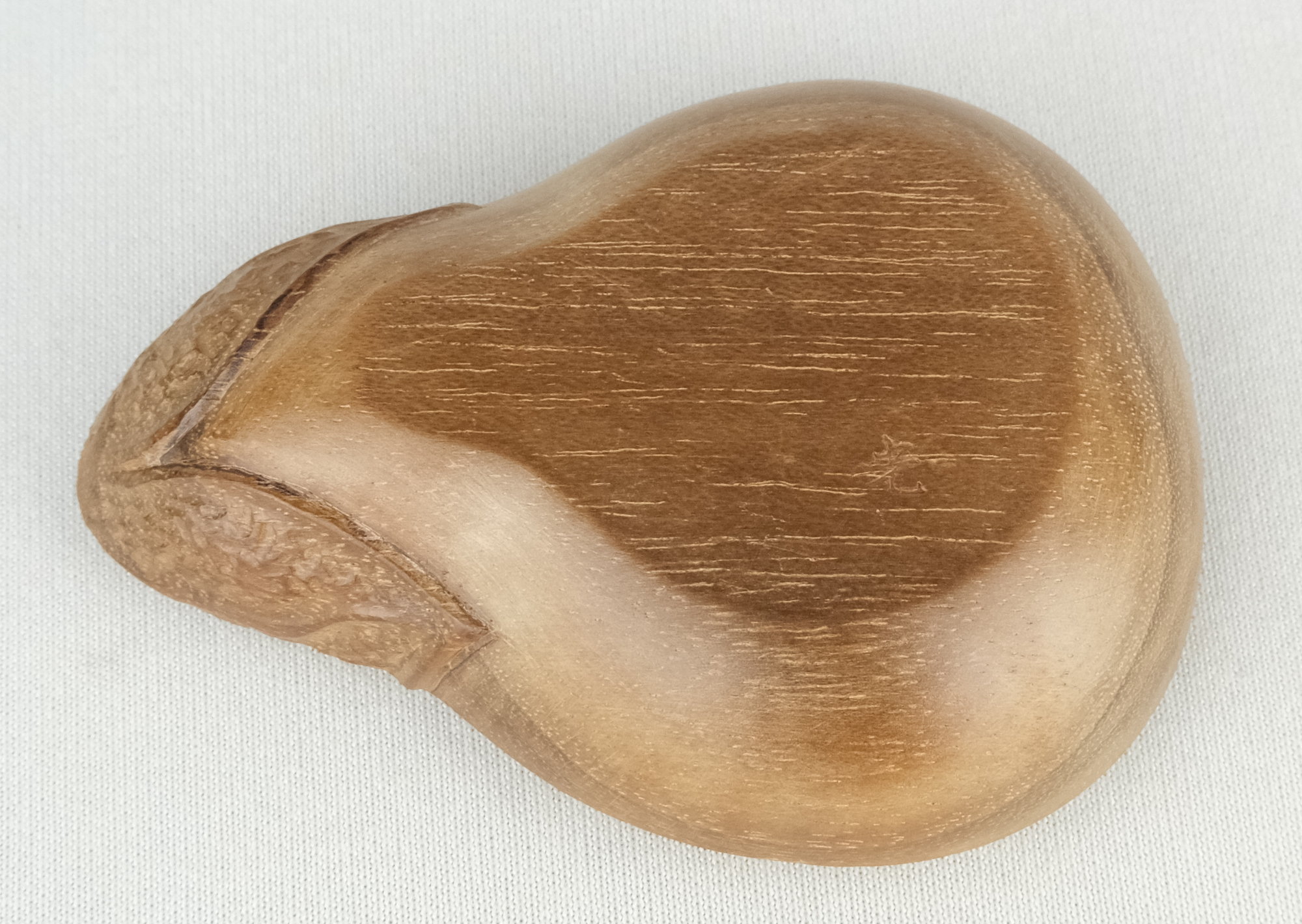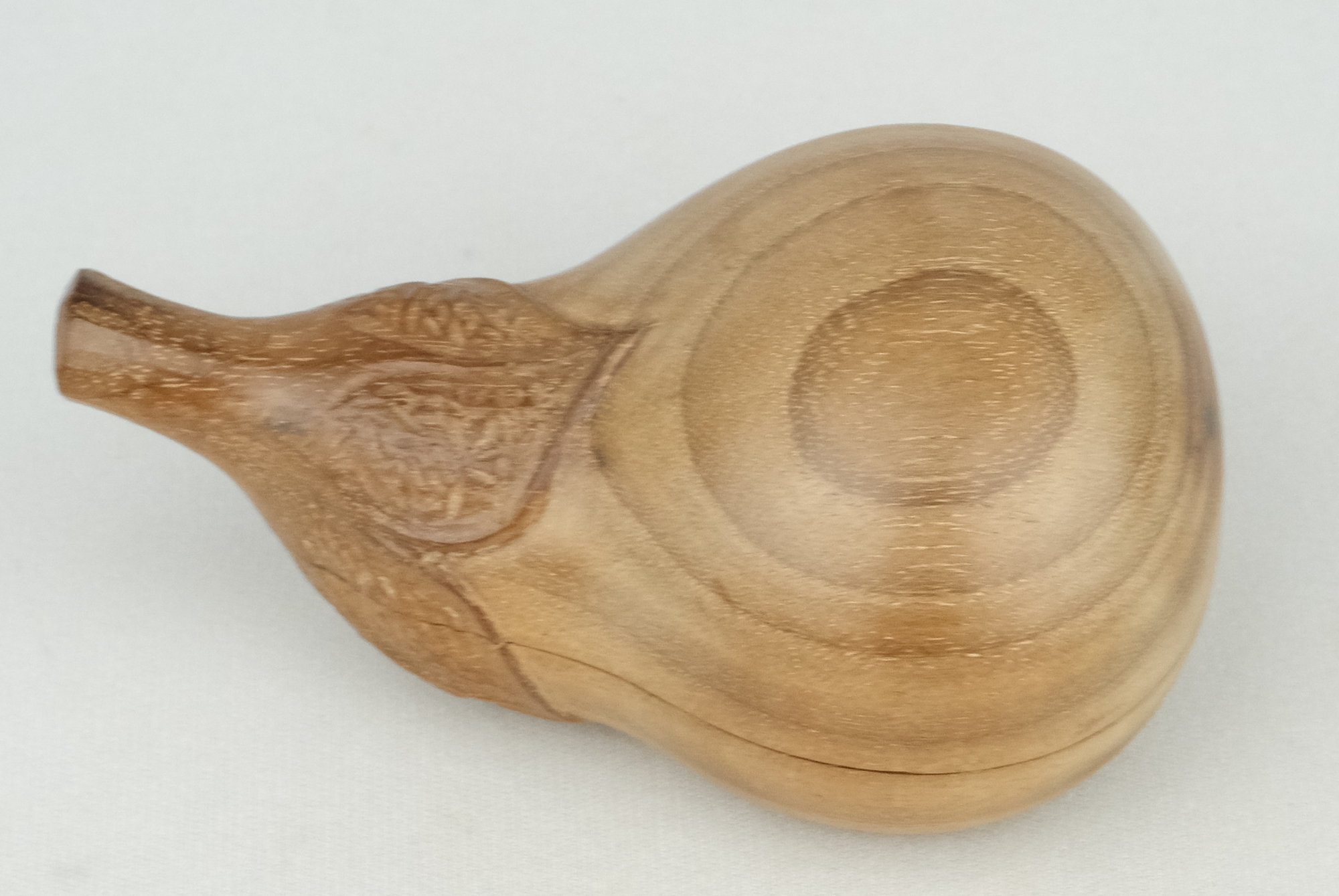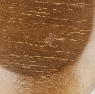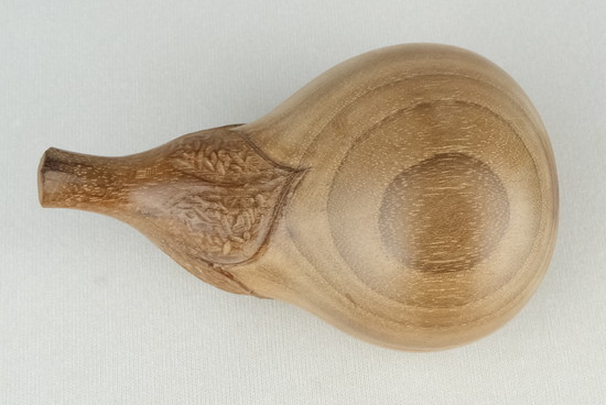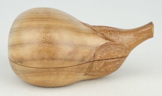 桑細工の第一人者で人気の高い川本光春作で桑彫茄子香合です。特にヘタの部分の造形が細かで作の良い香合となっています。