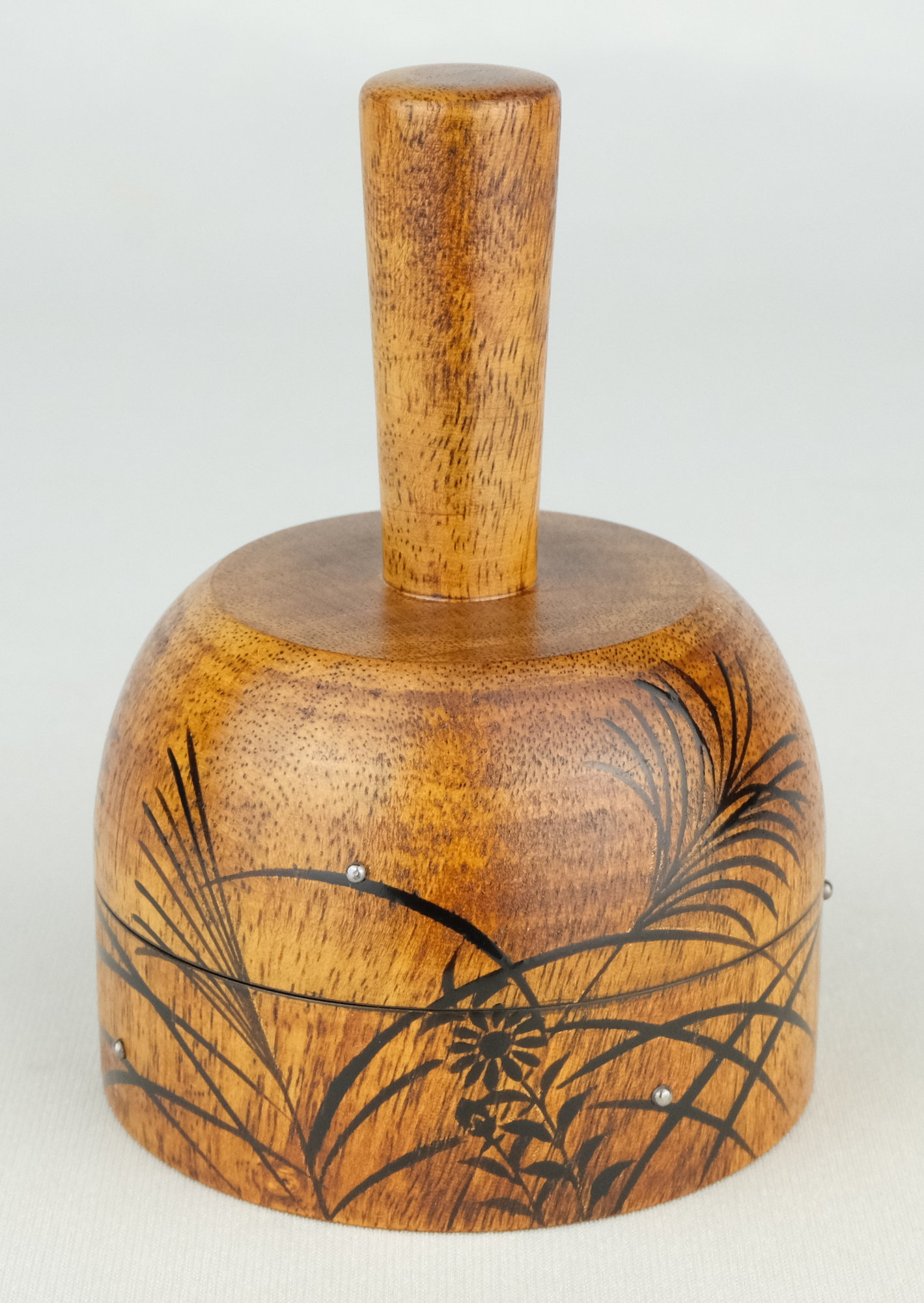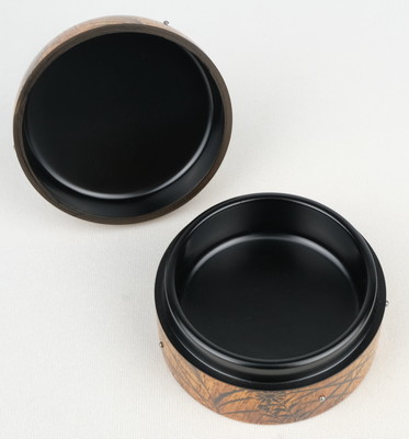 京都の作家、鈴木光入作で秋草蒔絵柿材砧形香合です。素材の木目を生かした秋の風情ある香合です。