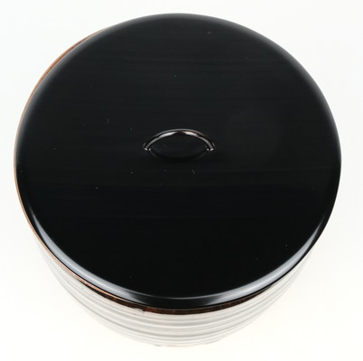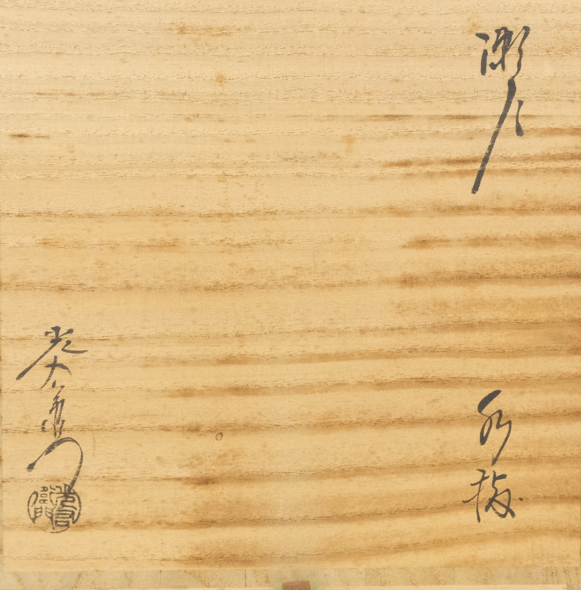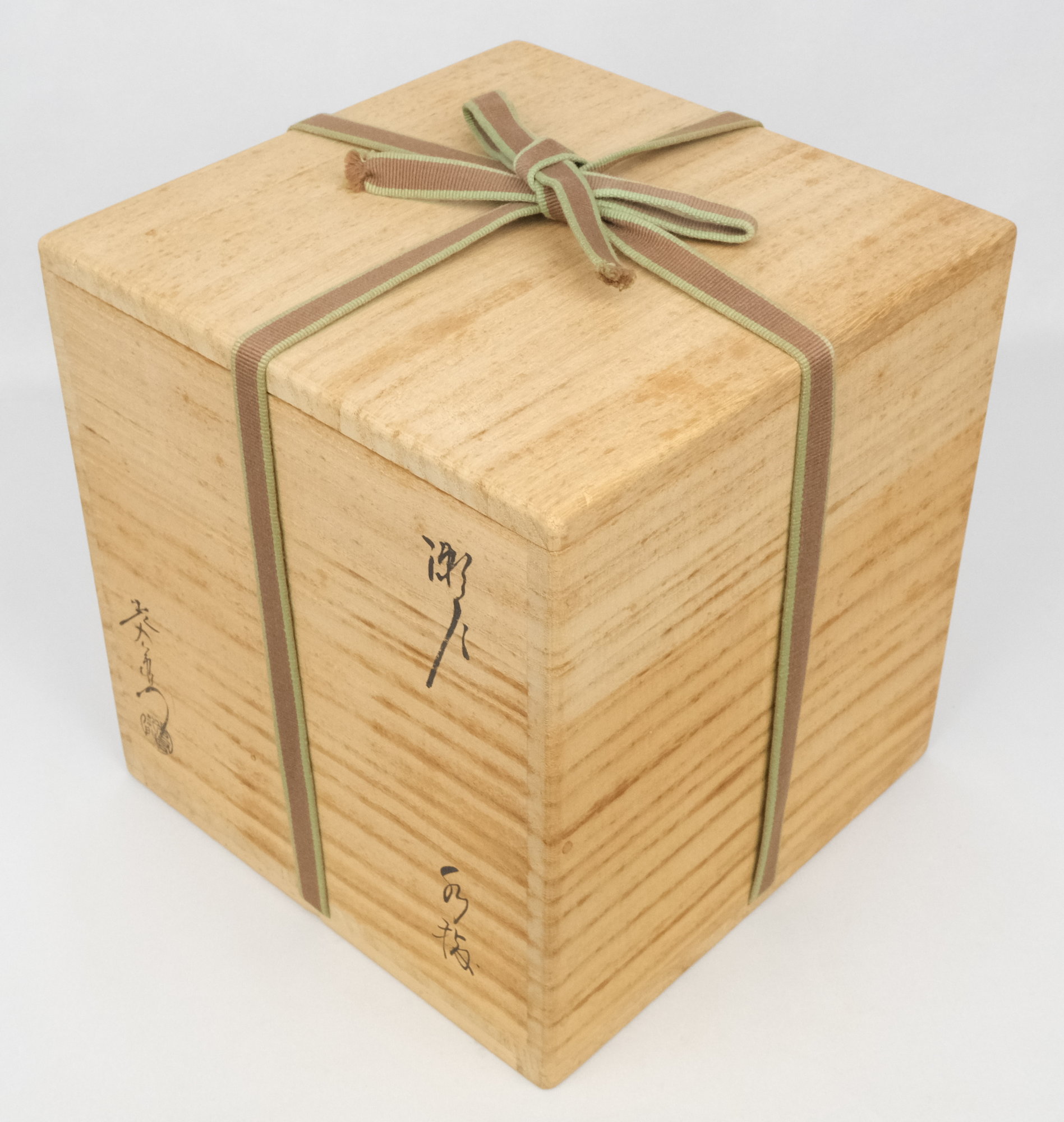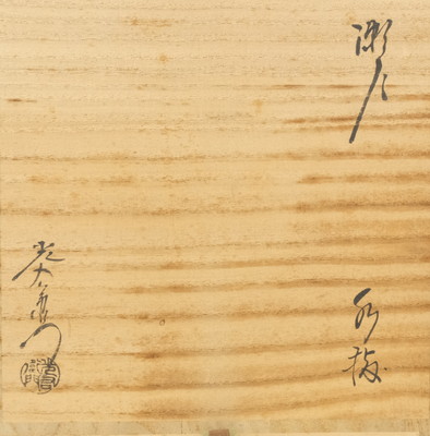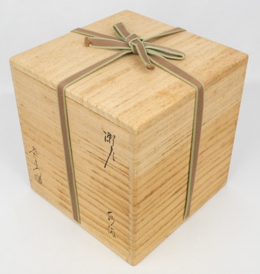 状態は無傷完品ですが、蓋にごく薄いシミがあります。共箱もシミが出ています。