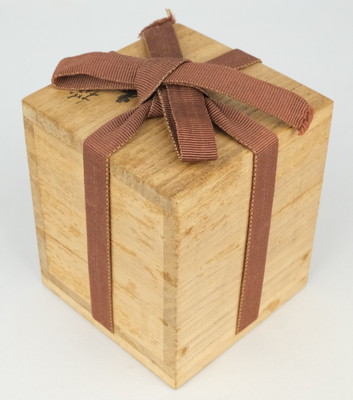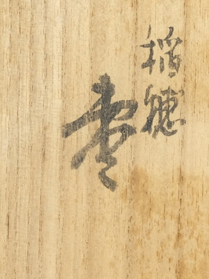 目につくようなスレや傷はなく状態は美品です。共箱はシミが出ています。作者のしおりと共布が付いています。