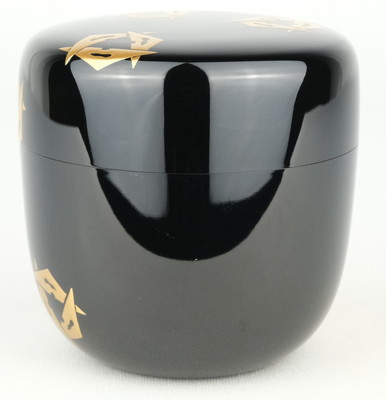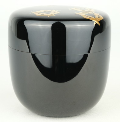 表千家の宗匠、堀内宗完(宗心、兼中斉)お書付の鱗鶴蒔絵大棗です。作は康光です。表千家のお道具によく見られる鱗鶴の意匠で季節を問わずにお使いいただける良いお棗です。