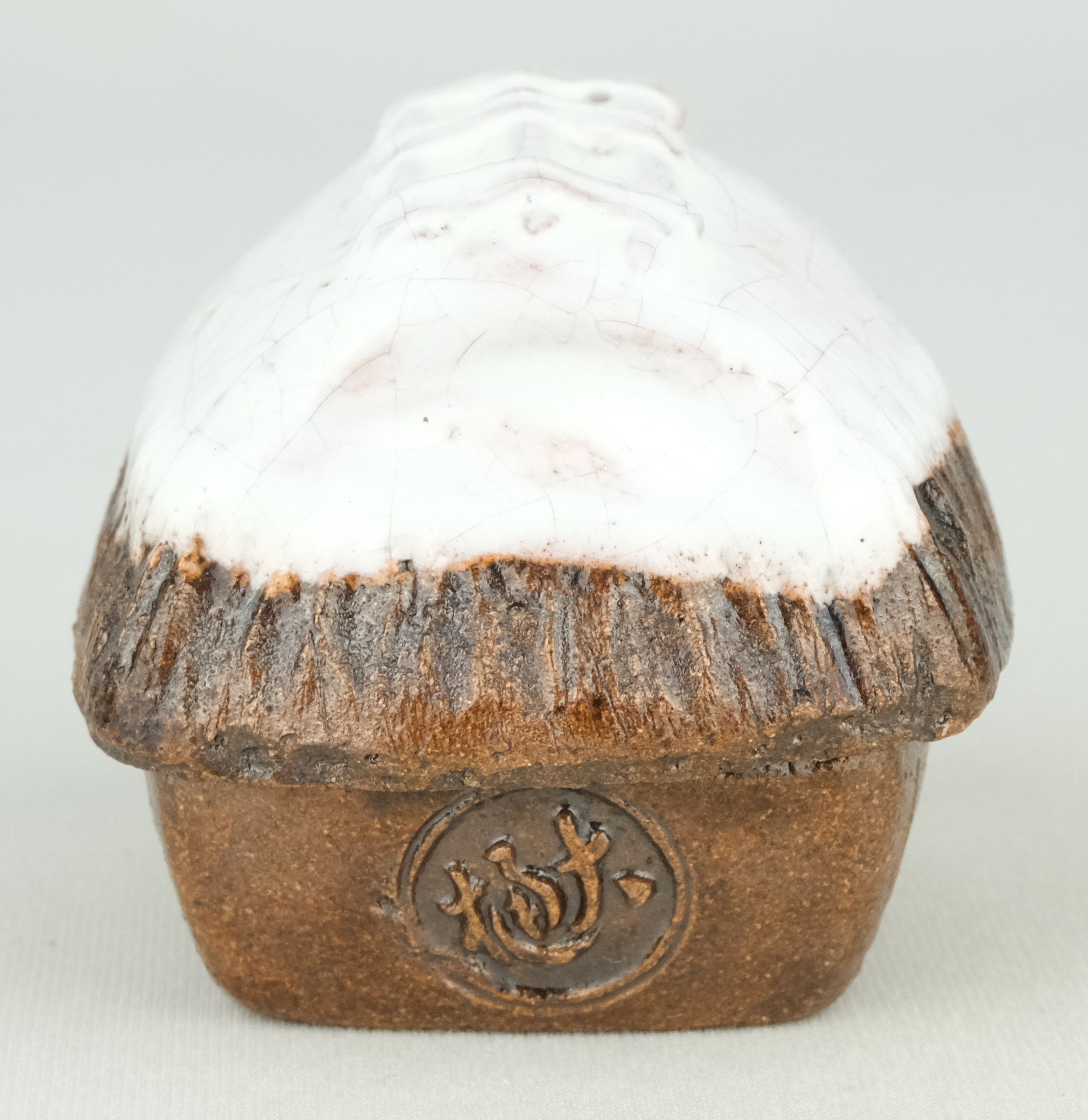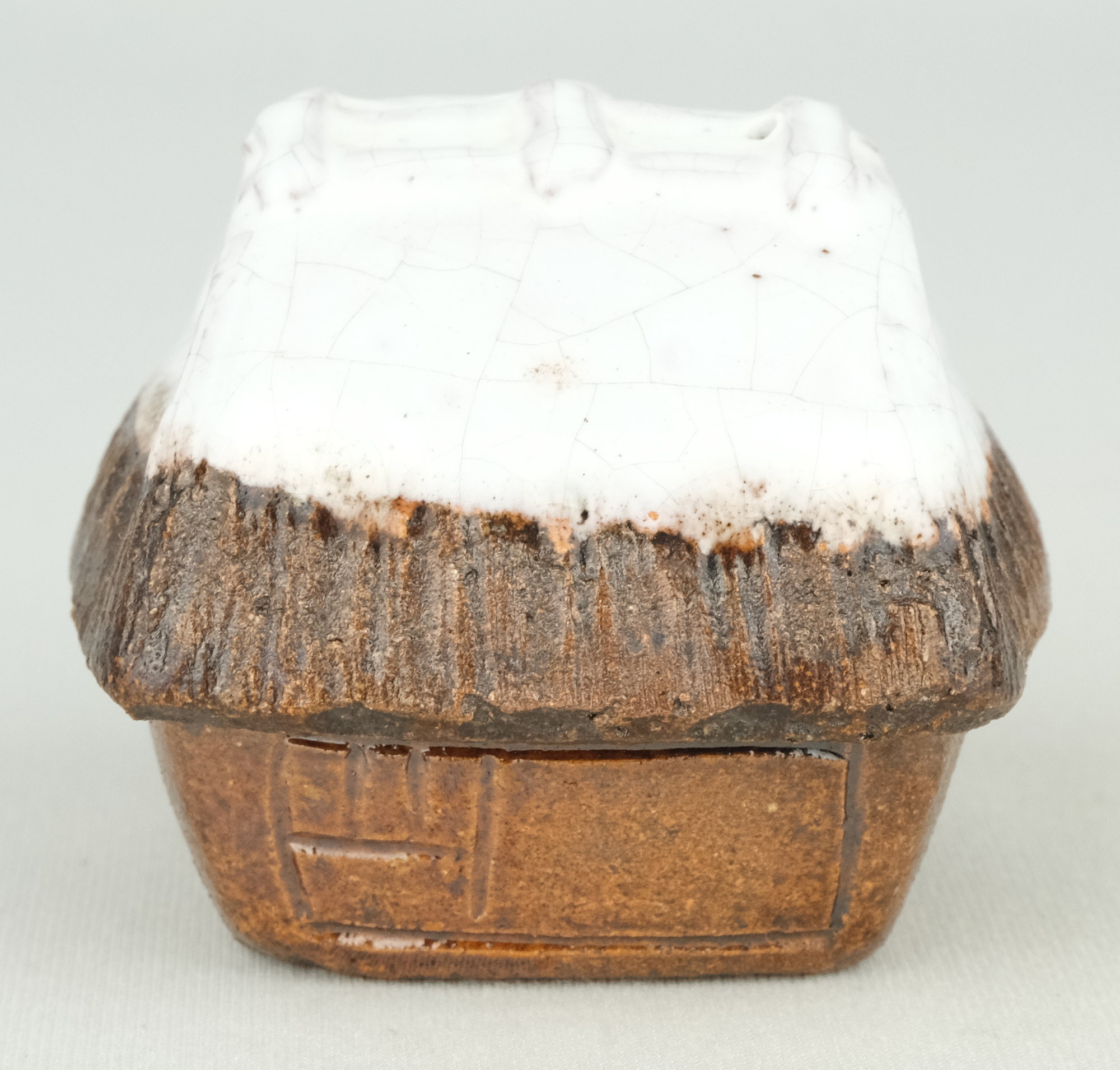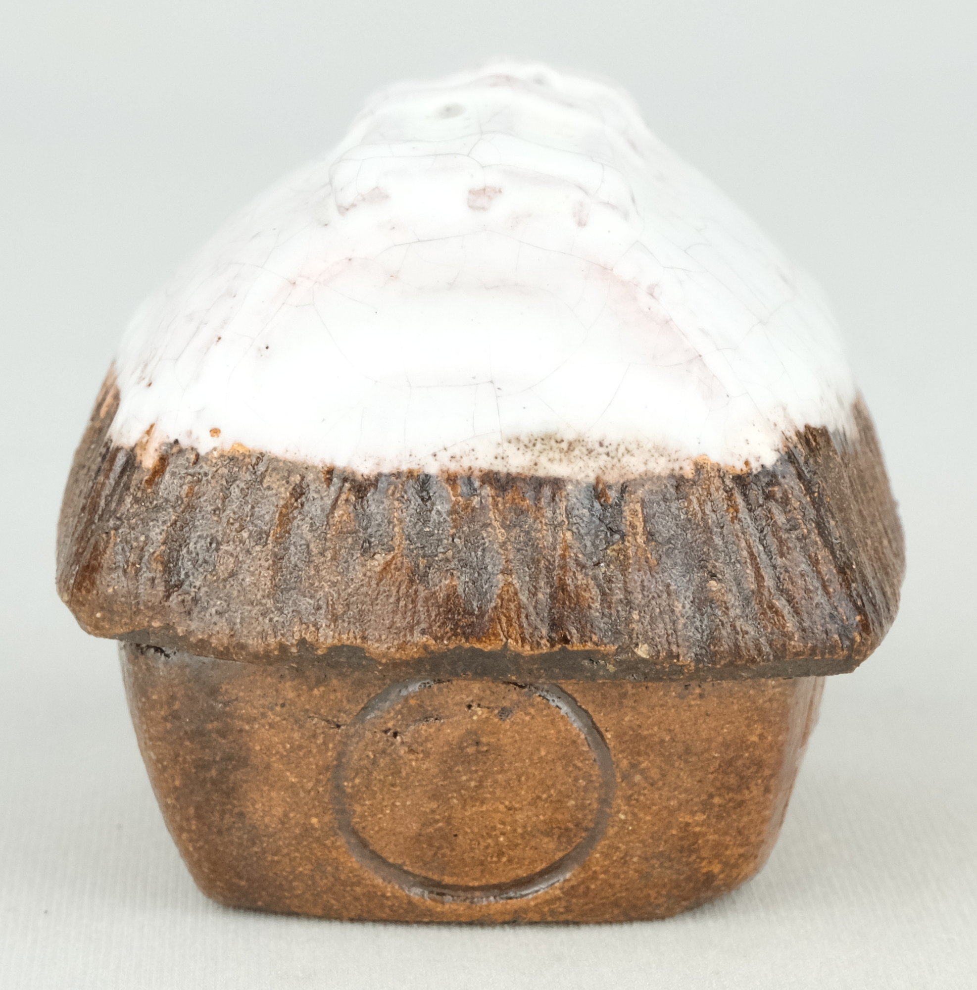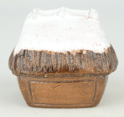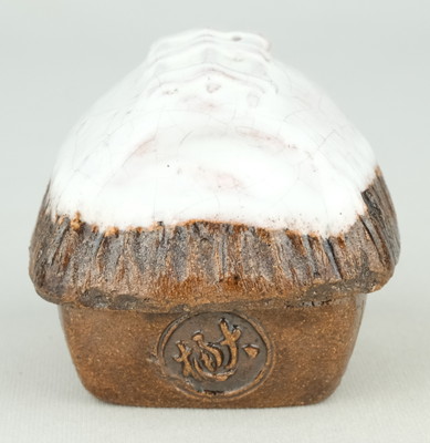 大樋焼の名工、9代大樋長左衛門作で田家雪香合です。雪のかぶった農家を表現した風情あふれる冬らしい香合です。