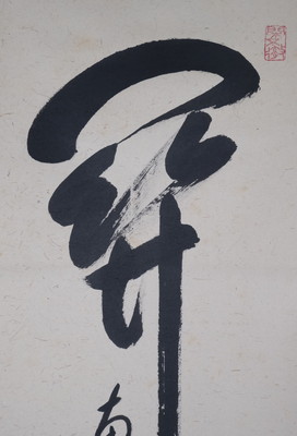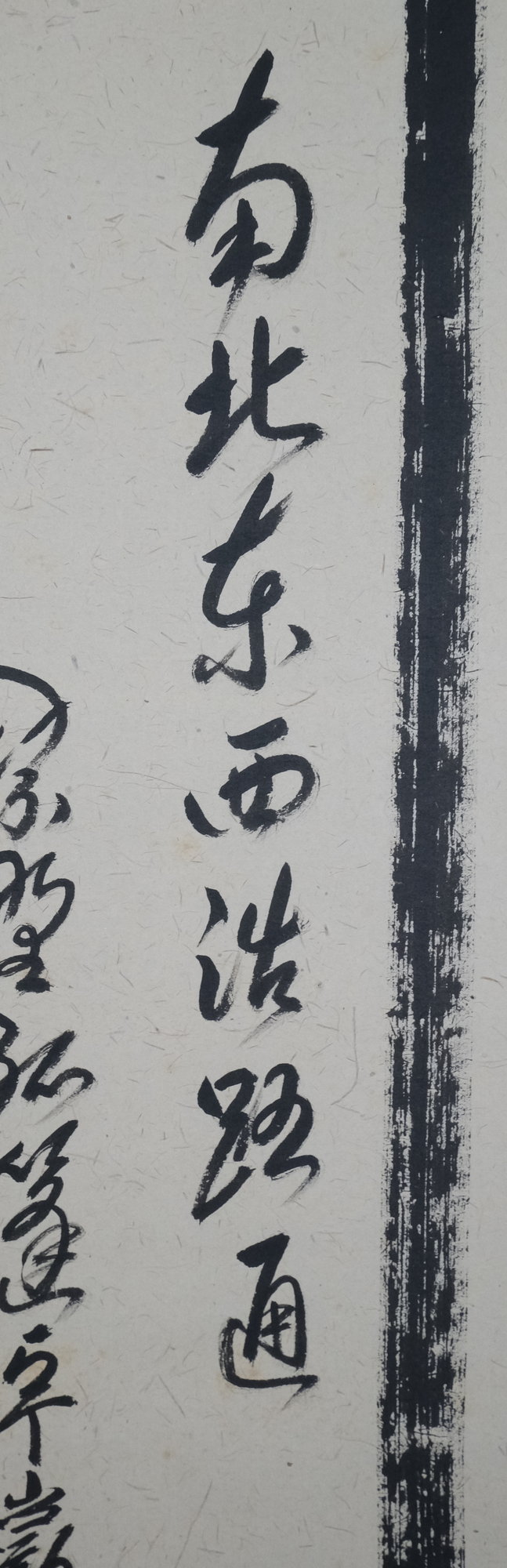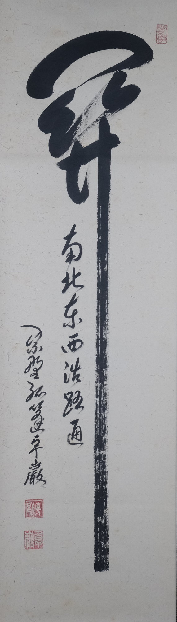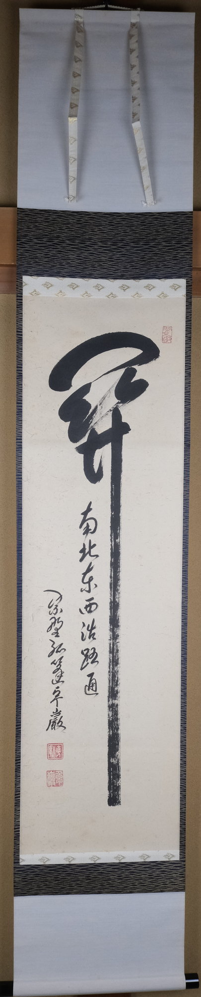 「關(関)そのものの意味は関所や閉ざされた門の事。それに対して東西南北どこへでも通じているという伸びやかな境涯。「關(関)」は碧巌録の公案に基づき、「南北東西活路通」はその「關(関)」の公案で大悟した大燈国師に基づく。