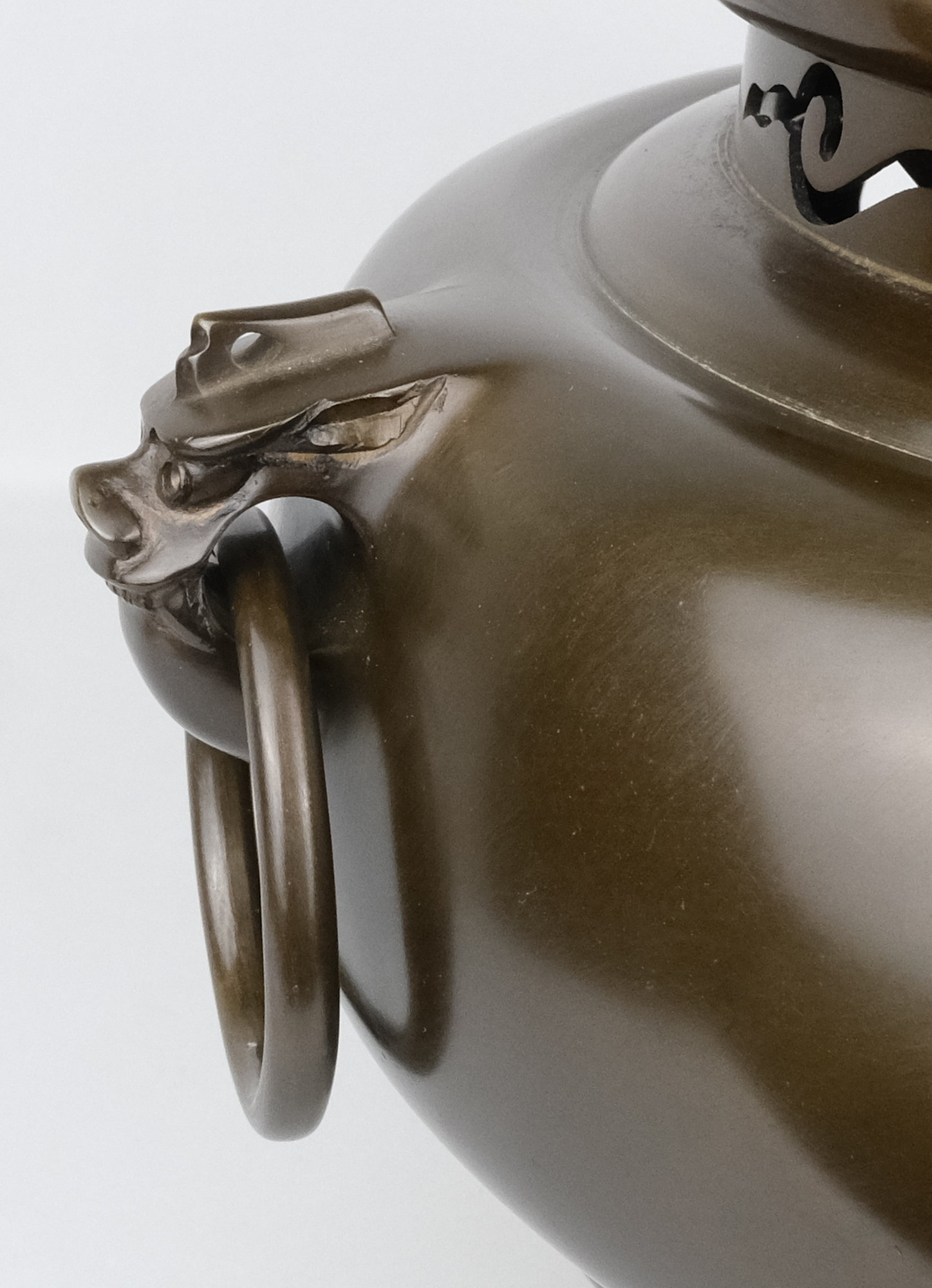 角谷已之助(1869〜1945)の次男として生まれる。兄は人間国宝角谷一圭。兄とともに父の下に師事し、釜の製作を始めた。