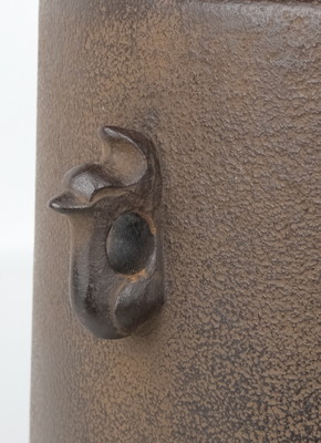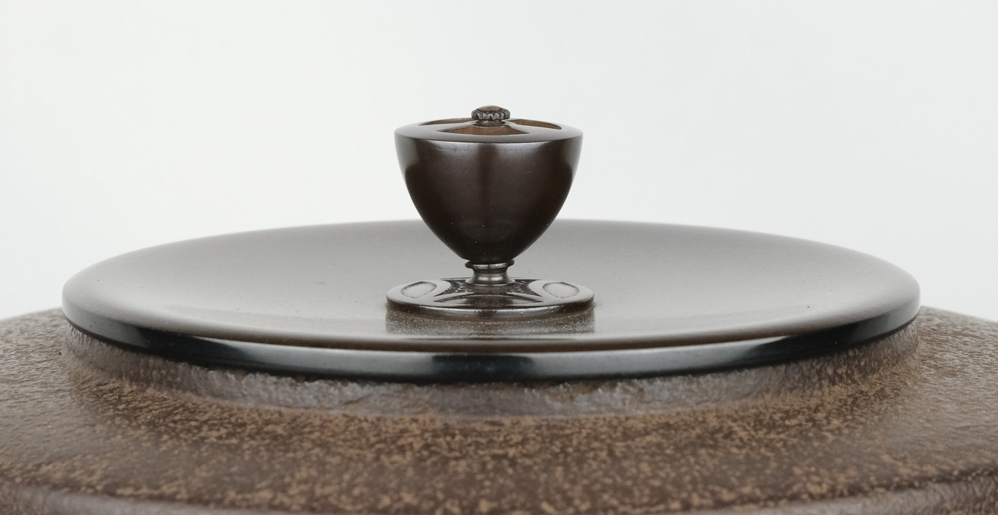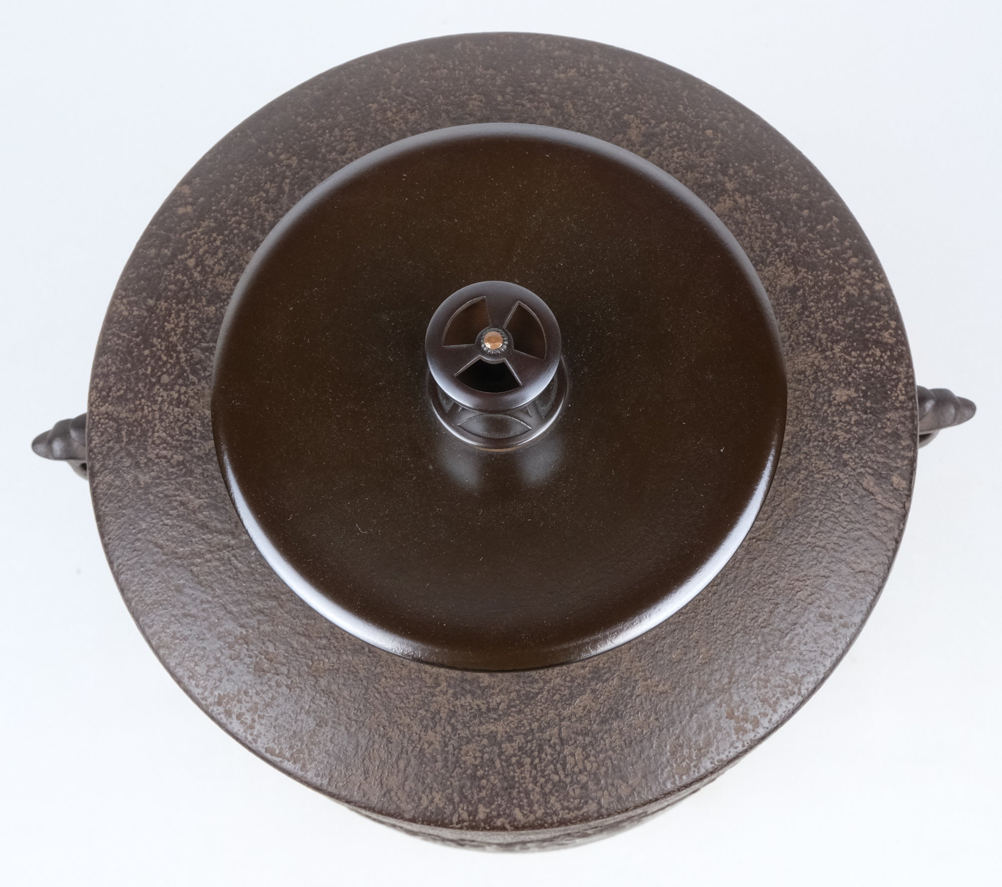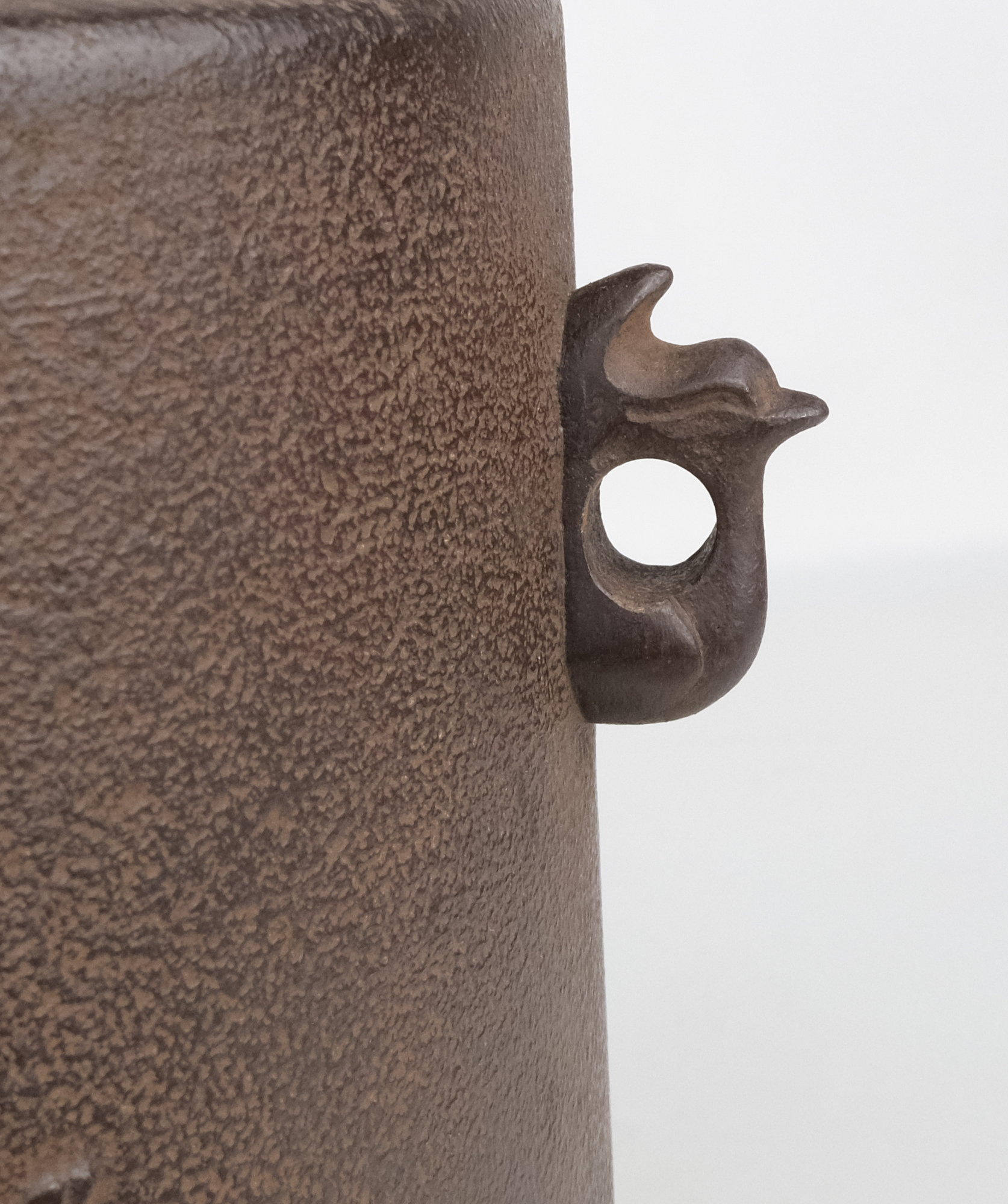 初代角谷與斉(1902〜1979)から茶の湯釜の制作を本格的に始める。與斉の号は初代が裏千家14代淡々斉より授かったもの。当代は昭和54年(1979)、3代目を襲名した。人間国宝角谷一圭は叔父にあたる。