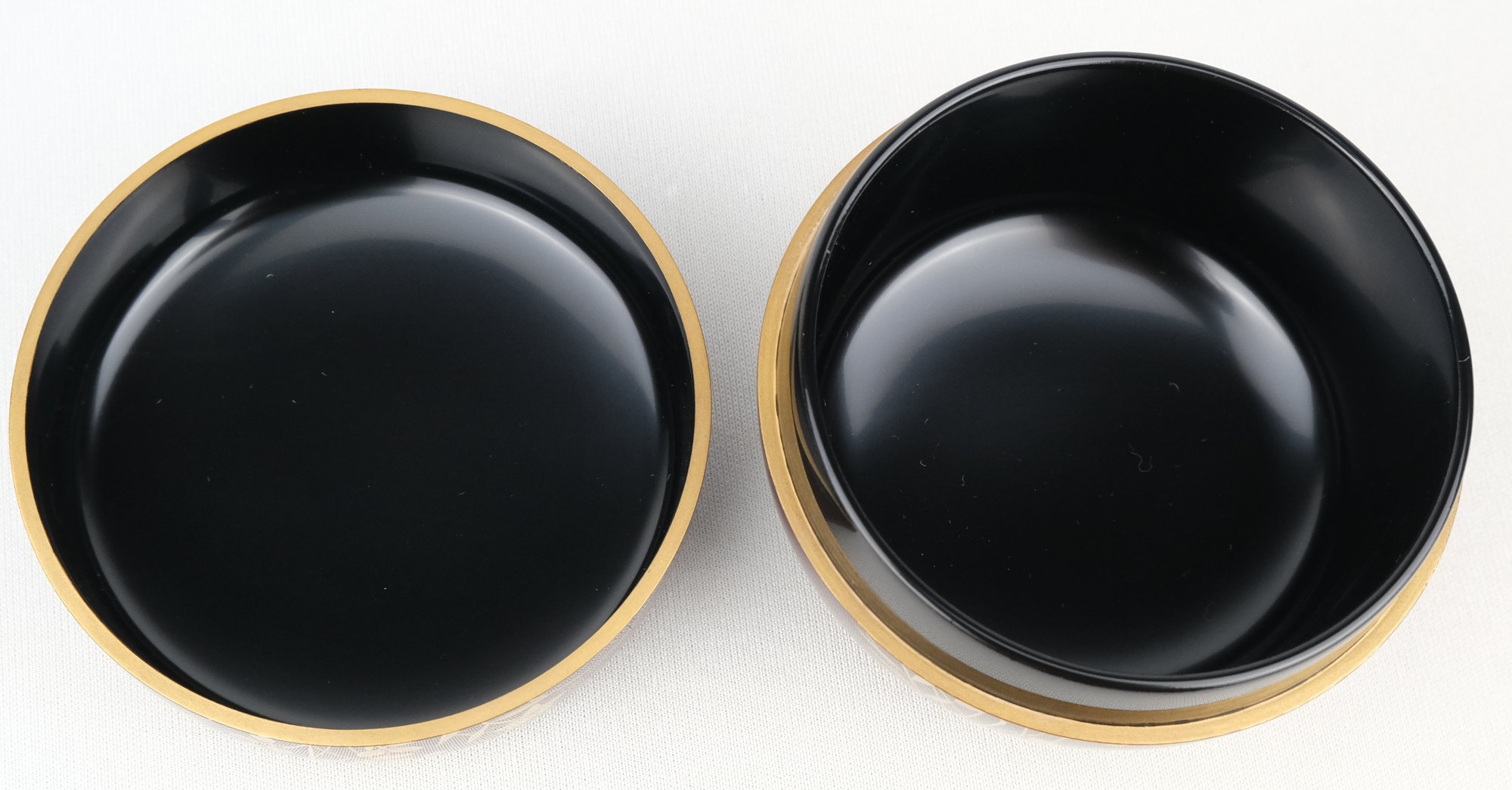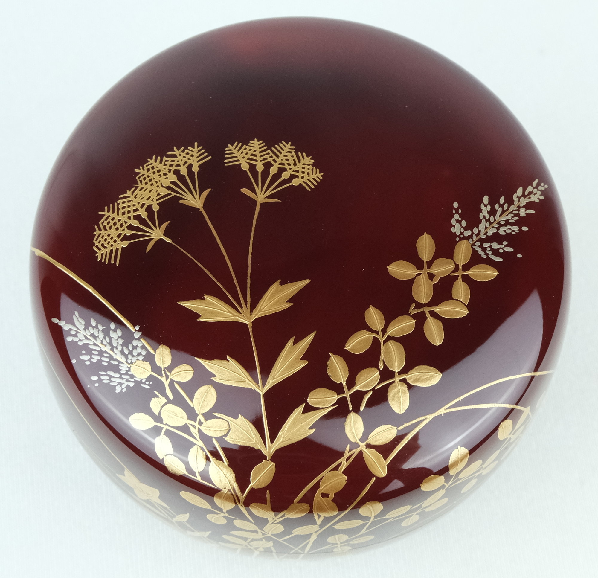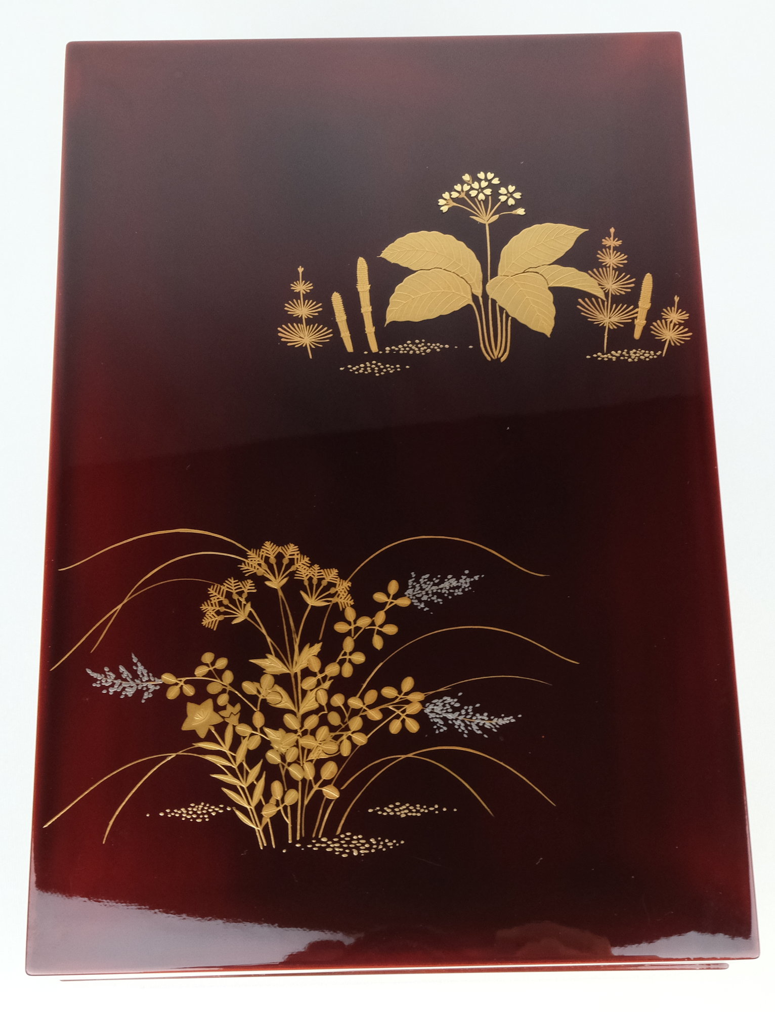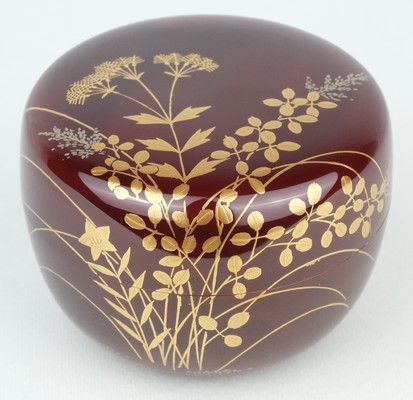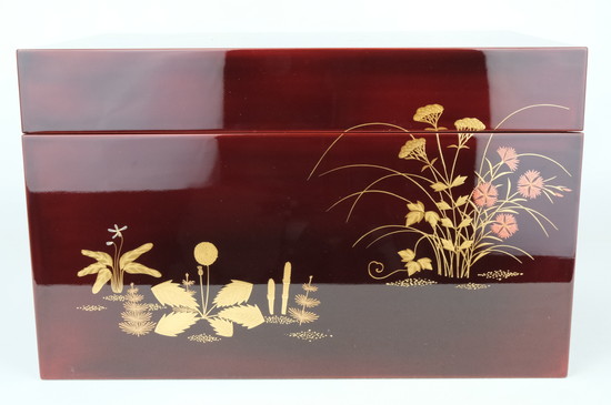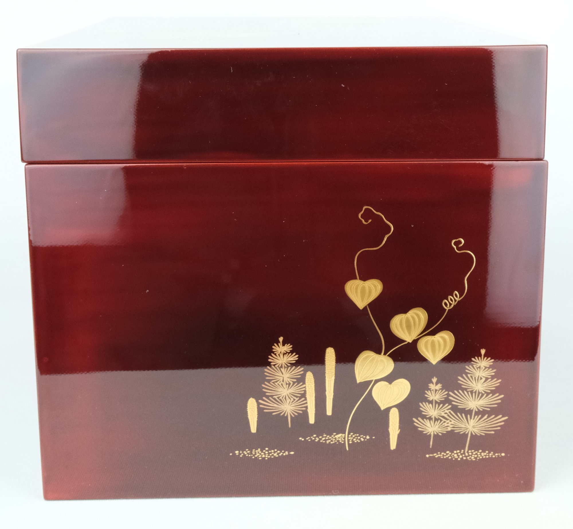 | 寸法 | 茶箱:幅14.7cm × 奥行21.5cm × 高さ13.4cm 棗:直径6.7cm 高さ4.7cm 香合:直径4.8cm 高さ1.6cm 筅筒:直径4.5cm 高さ11cm |