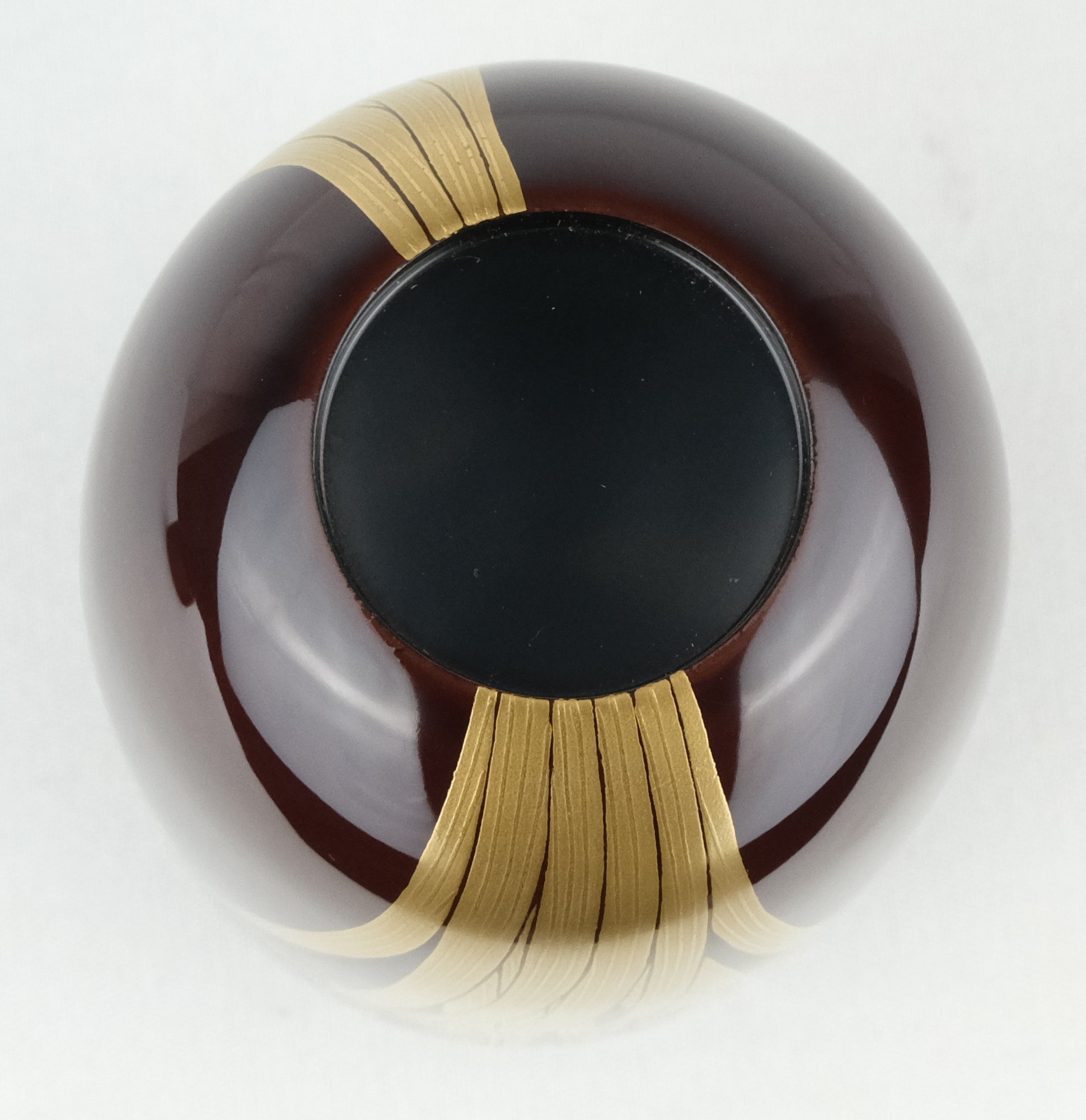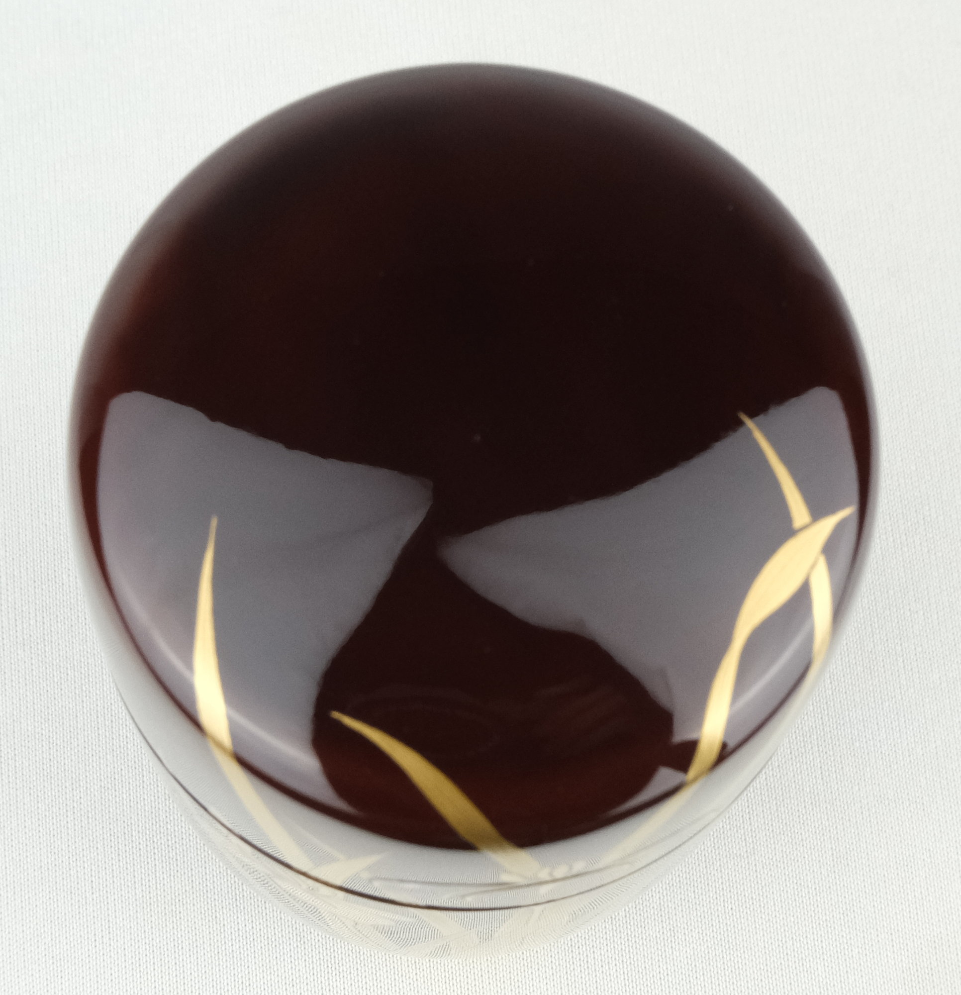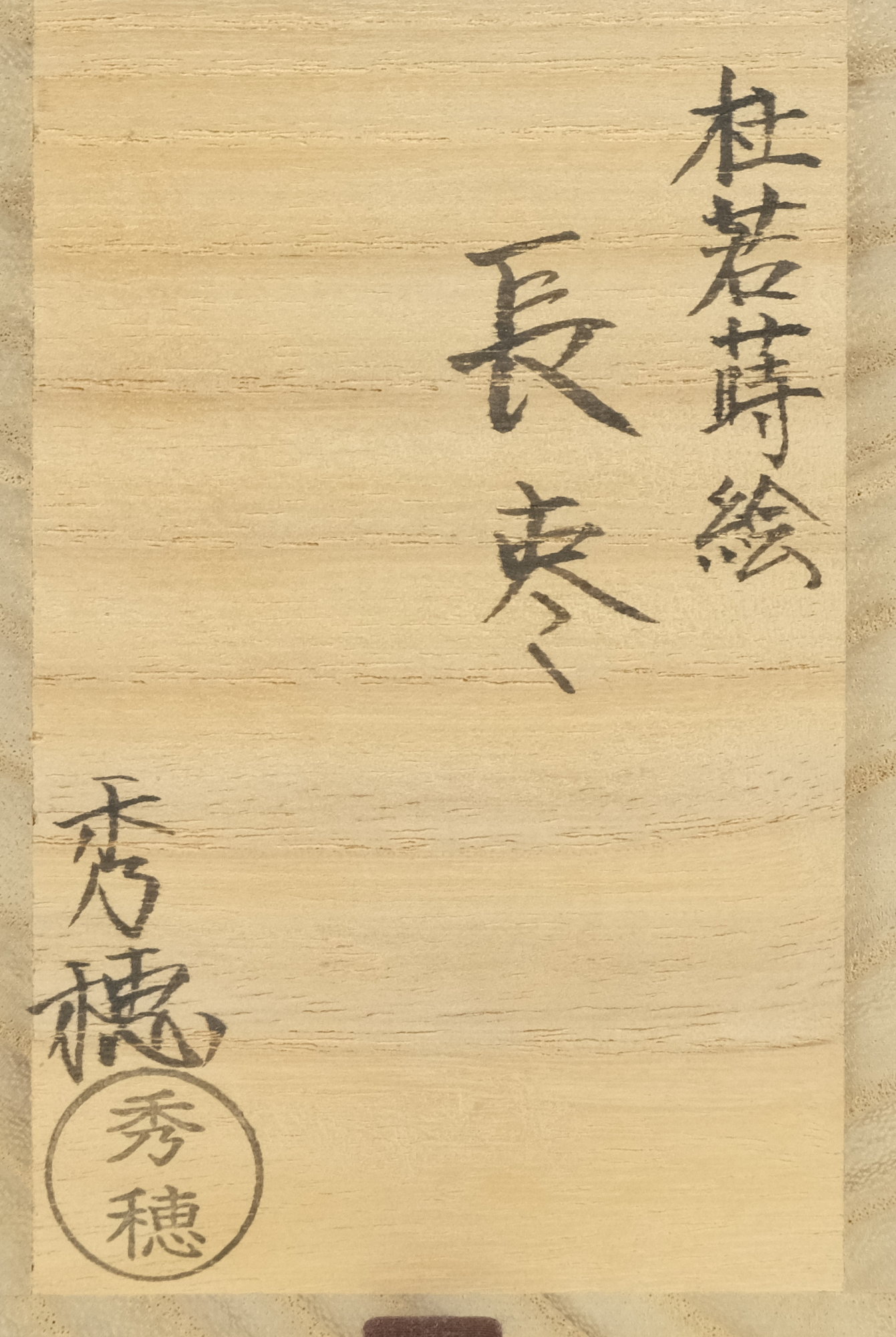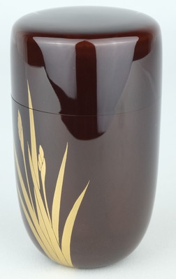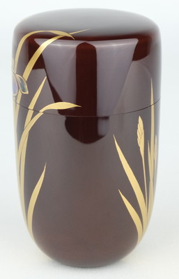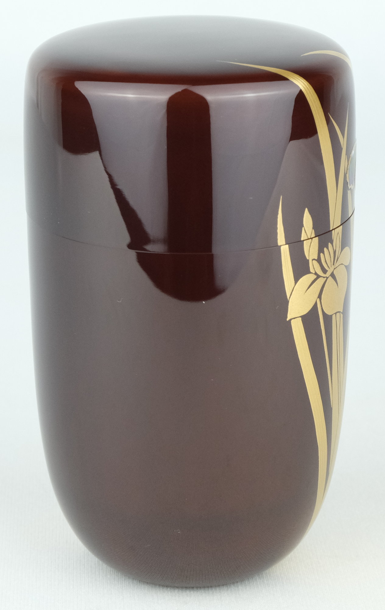 熊谷秀穂作で杜若蒔絵長棗です。長棗の形状を生かした構図で杜若のスラッとした姿が印象的な長棗です。