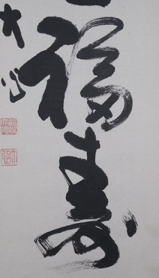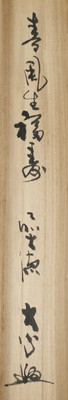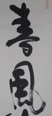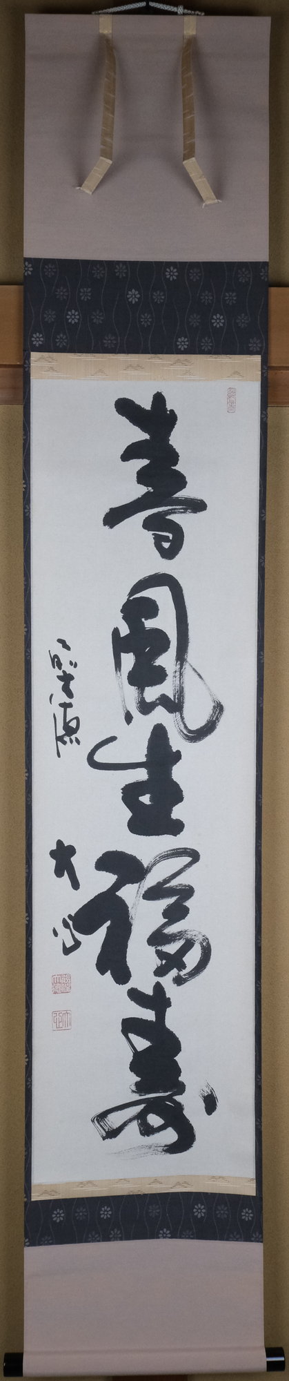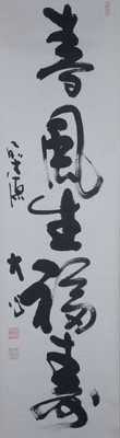 大徳寺派で彦根の長楽寺の和尚、小室大心筆で「春風生福寿」一行です。春の喜びを感じられる季節感ある良い一行です。
