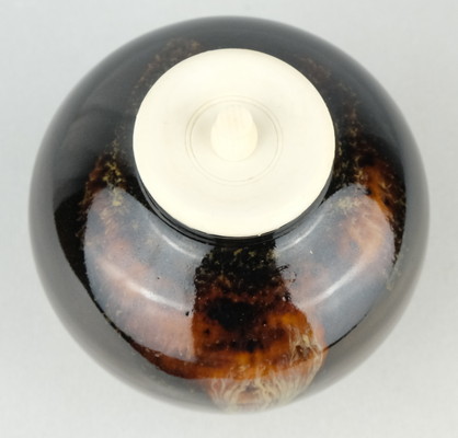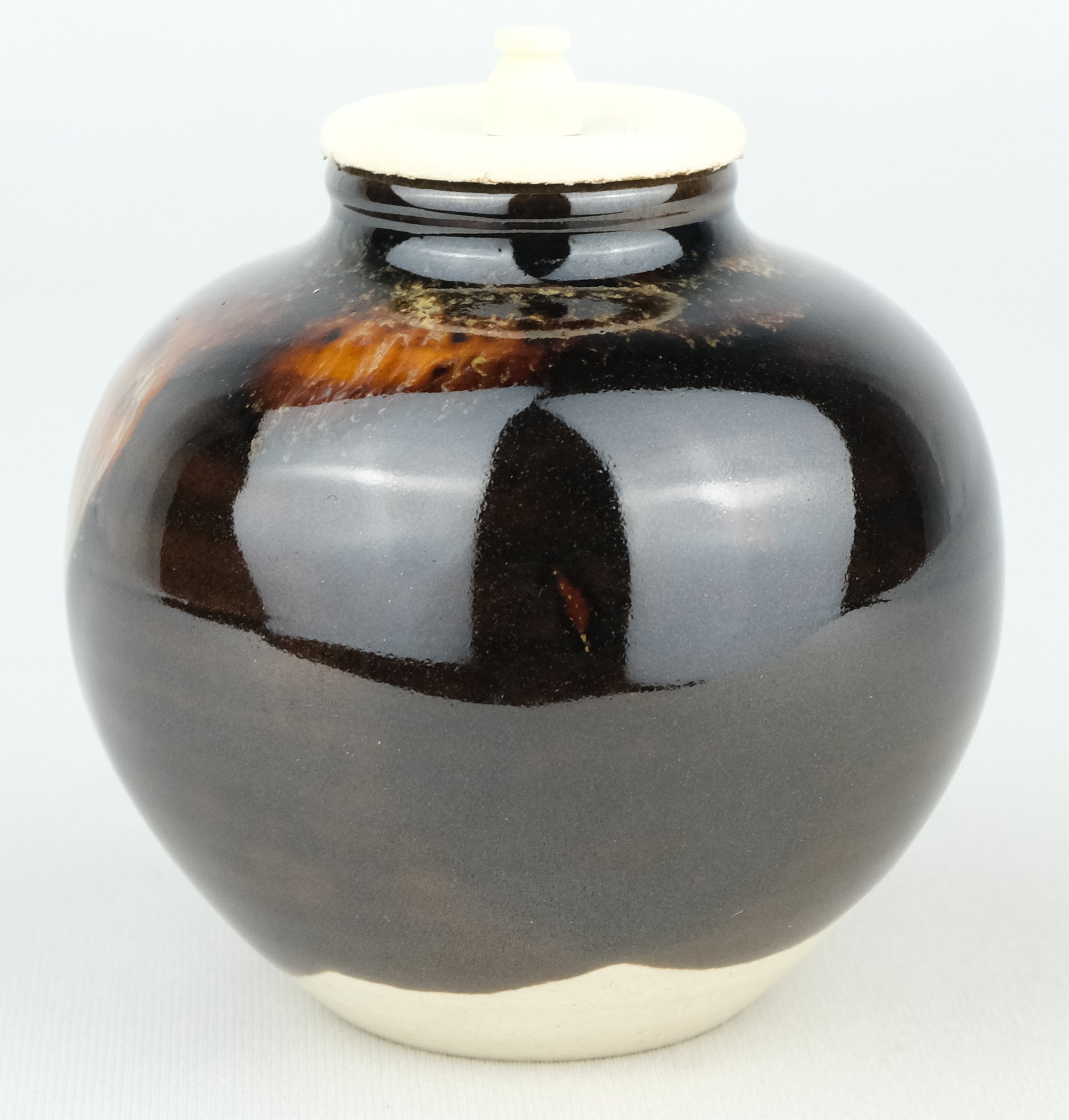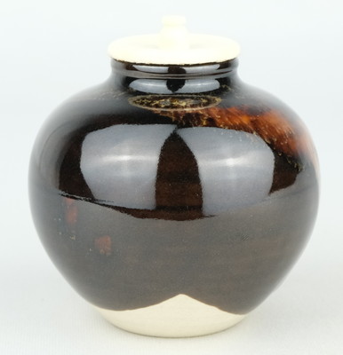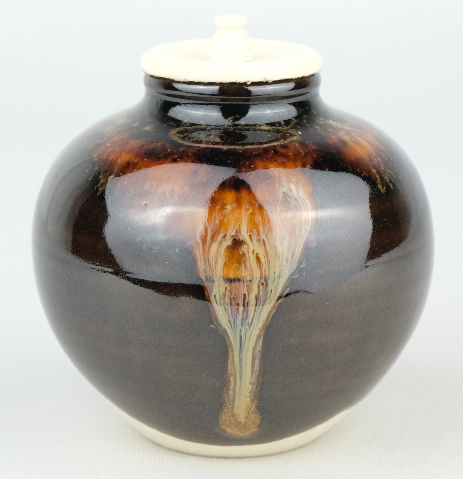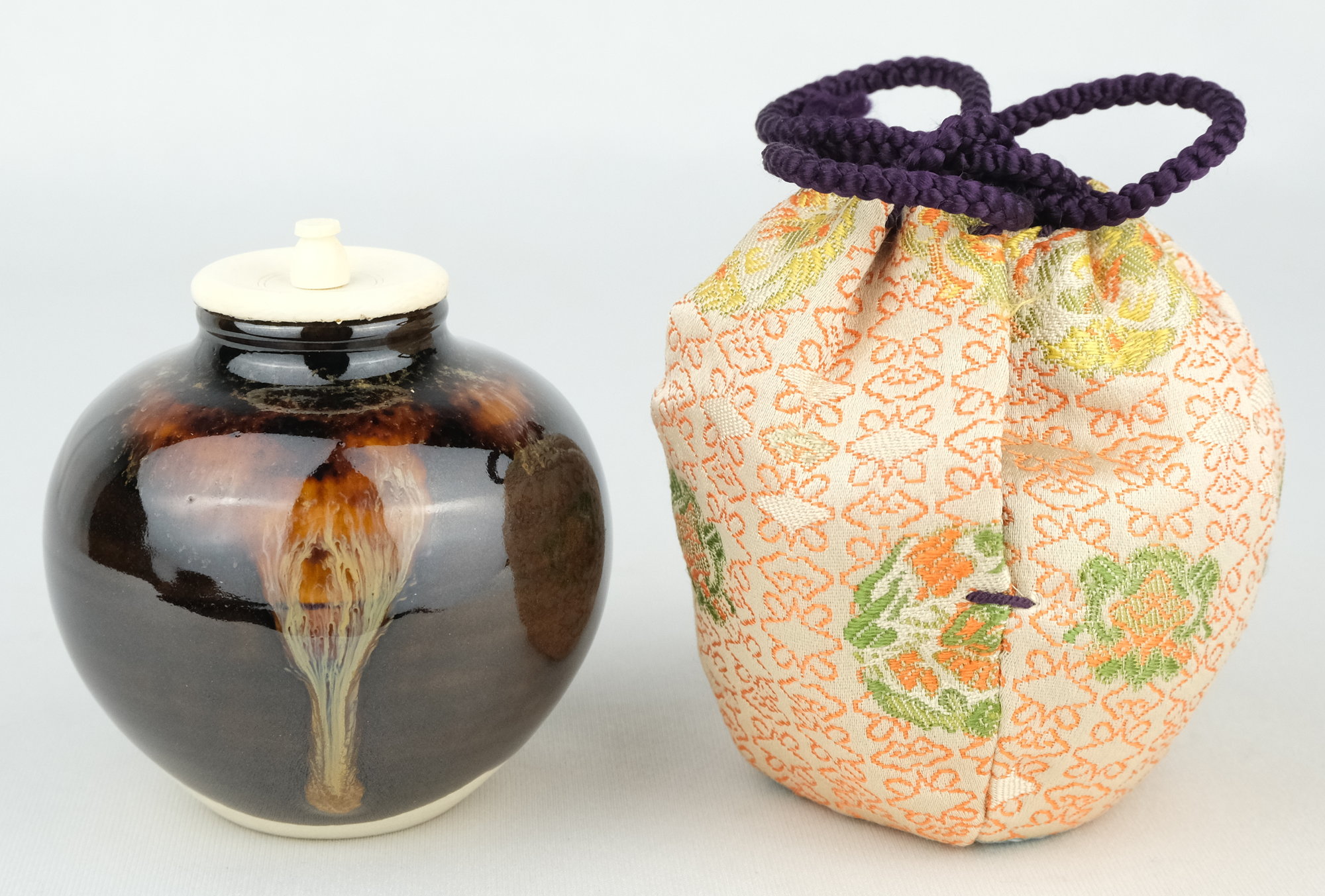 京都の作家、桶谷定一作で文琳茶入です。唐物写でお稽古に使うのにちょうどよいお茶入れです。仕服の裂地は雲菱龍鳳文です。