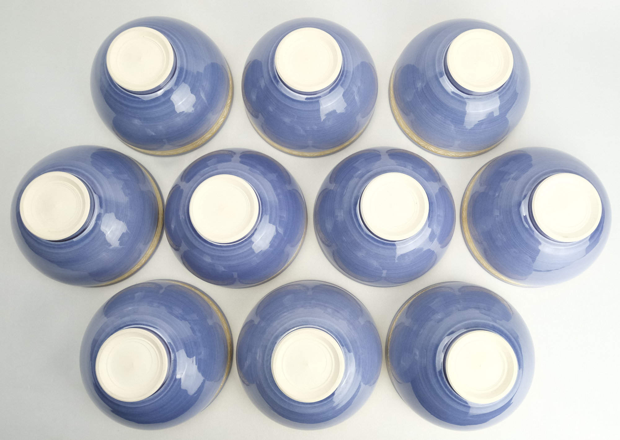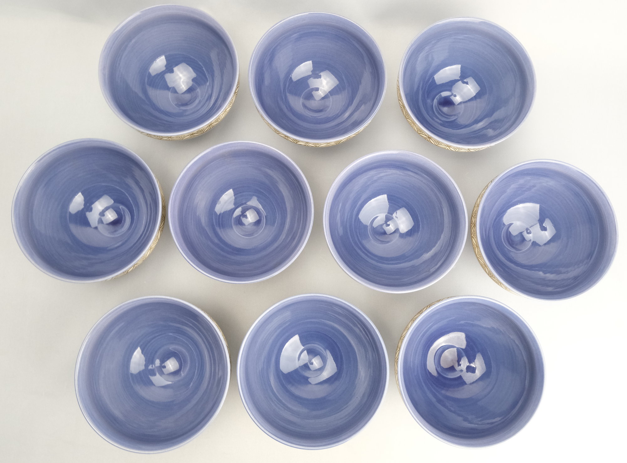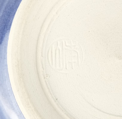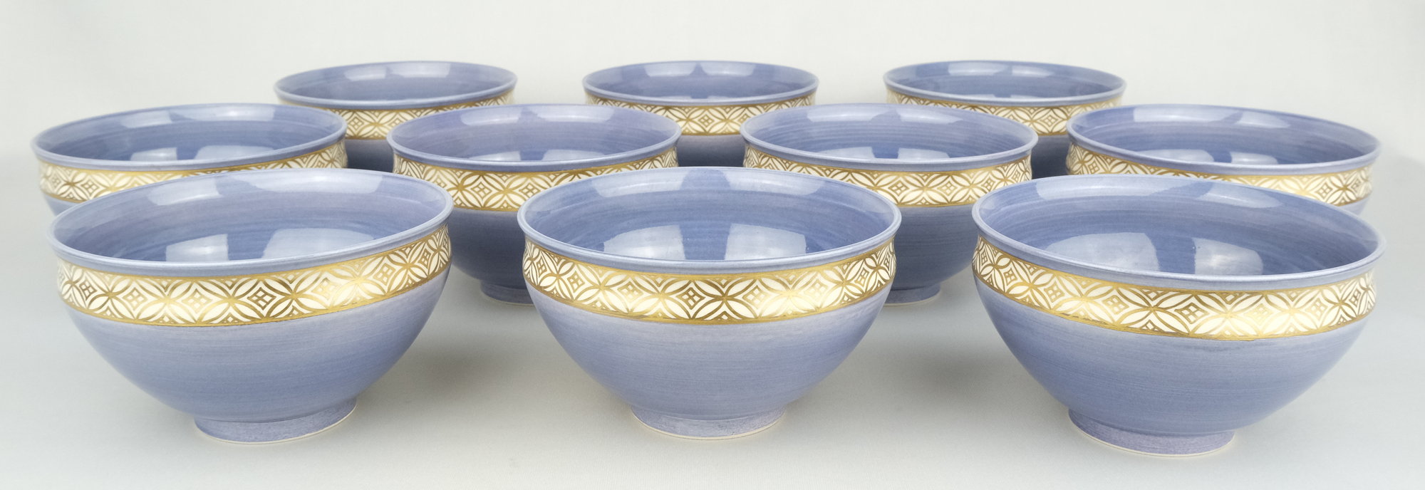 京焼の作家、伊藤南山作で紺紫交趾七宝数茶碗です。淡い色合いが印象的な紺紫交趾の数茶碗で七宝文の季節を問わない使い勝手の良い数茶碗です。