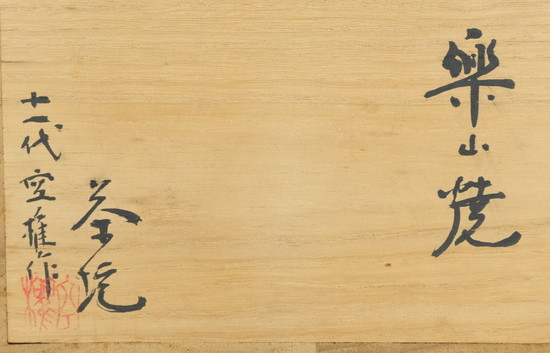 長岡住右衛門は楽山焼が不振に陥り、一時中断したのち松平不昧が布志名の陶工であった長岡住右衛門を抜擢し楽山焼5代として再興にあたらせたことを始まりとする。11代空権は楽山焼窯元の家に生まれ、昭和22年(1947)より家業に従事。祖父9代空味、父10代空処に師事。昭和46年(1971)、11代長岡住右衛門を襲名、空権を号する。平成12年(2000)、楽山焼で島根県指定無形文化財保持者に認定。