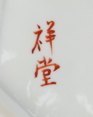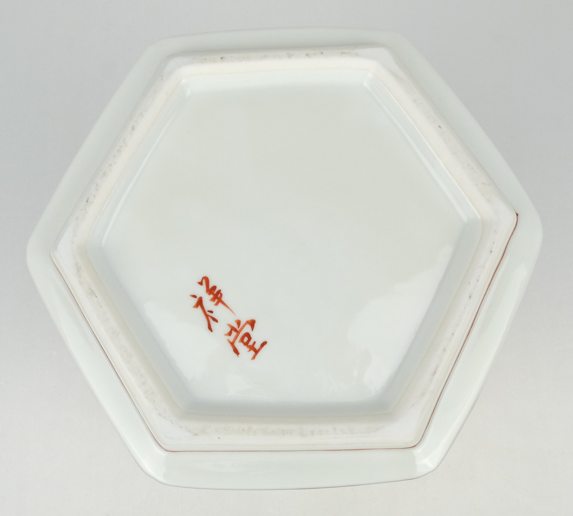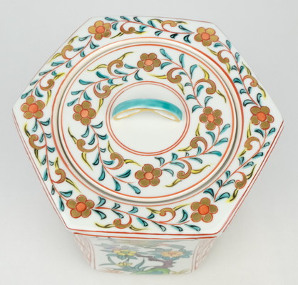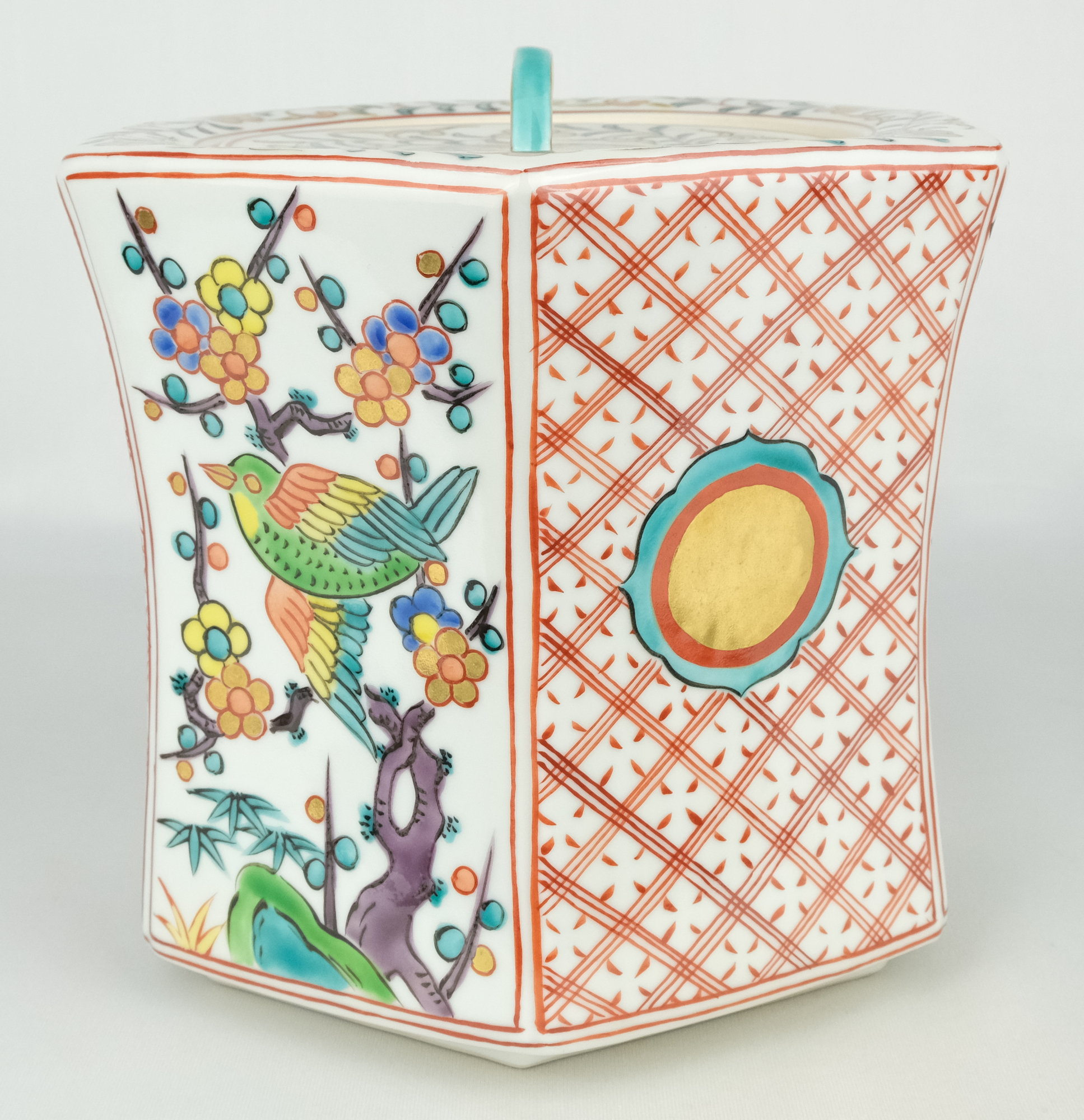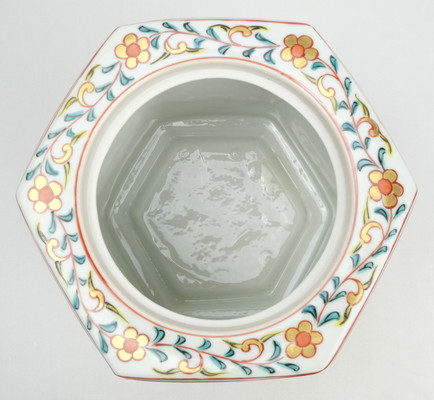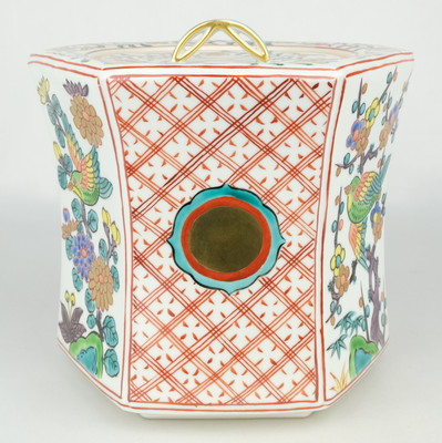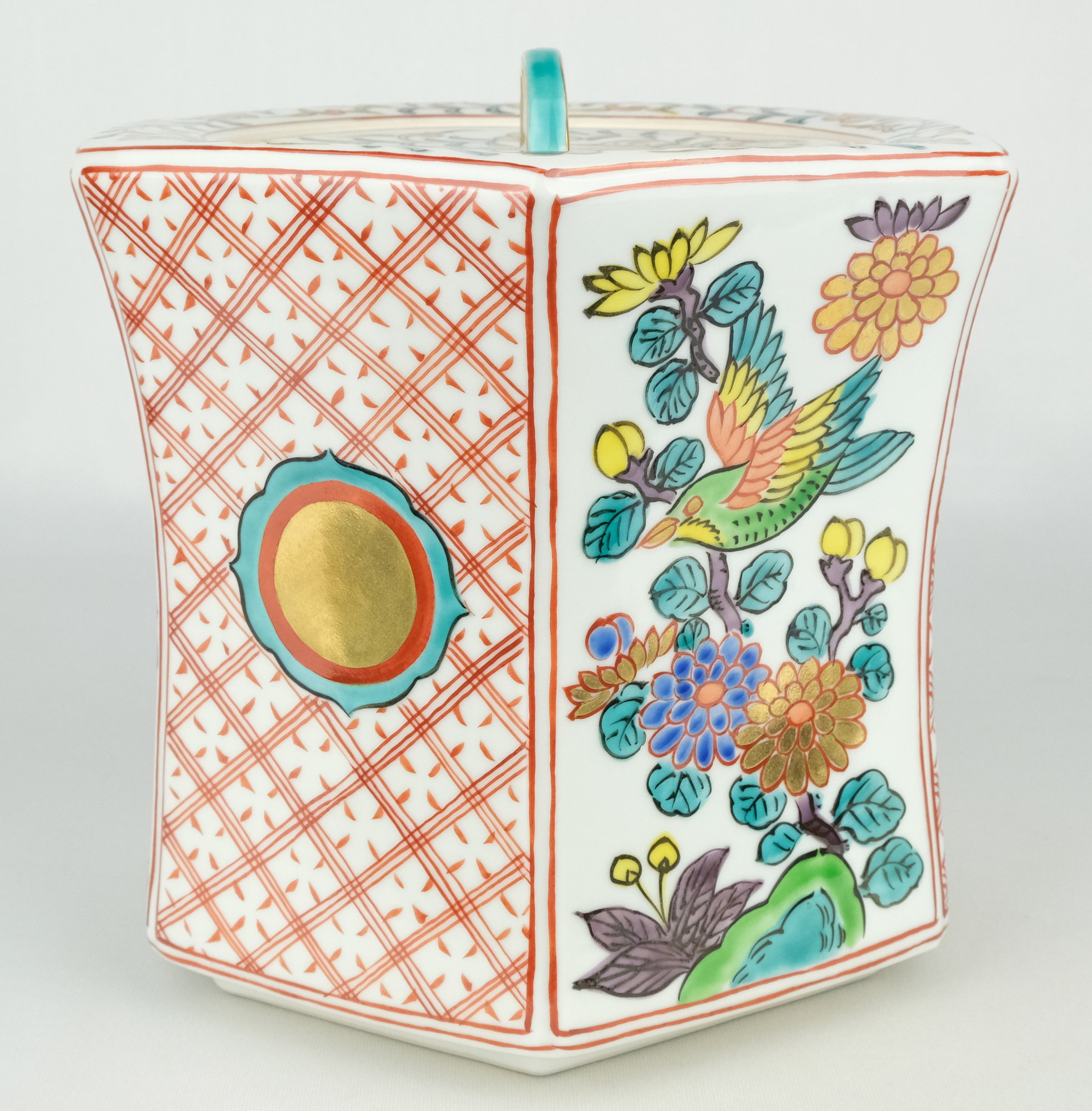 【出物】 赤絵花鳥文六角水指 手塚祥堂