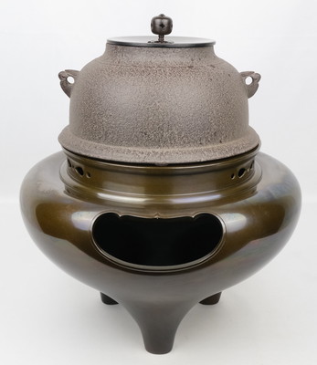 【出物】 真形釜添唐銅朝鮮風炉 高橋敬典 金谷浄雲