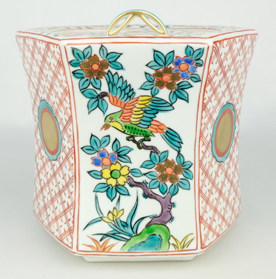 【出物】 赤絵花鳥文六角水指 手塚祥堂