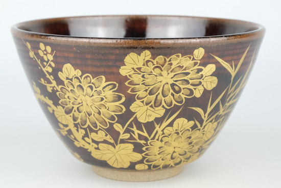 【出物】 金彩四君子茶碗 陽炎園(岩崎新定)