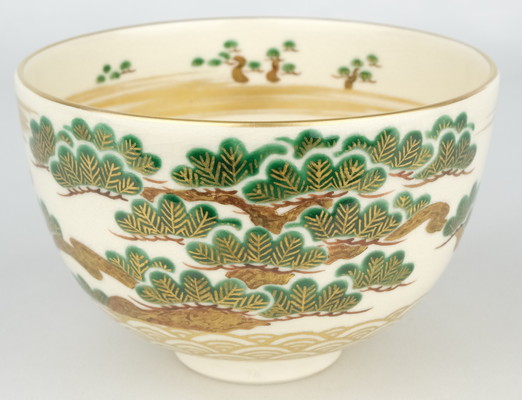 【出物】 色絵青海波に老松画茶碗 清閑寺窯(杉田祥平)