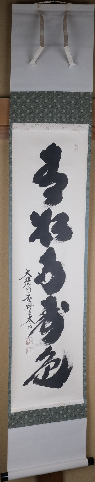 【出物】 掛軸 一行「青松多寿色」 小林太玄