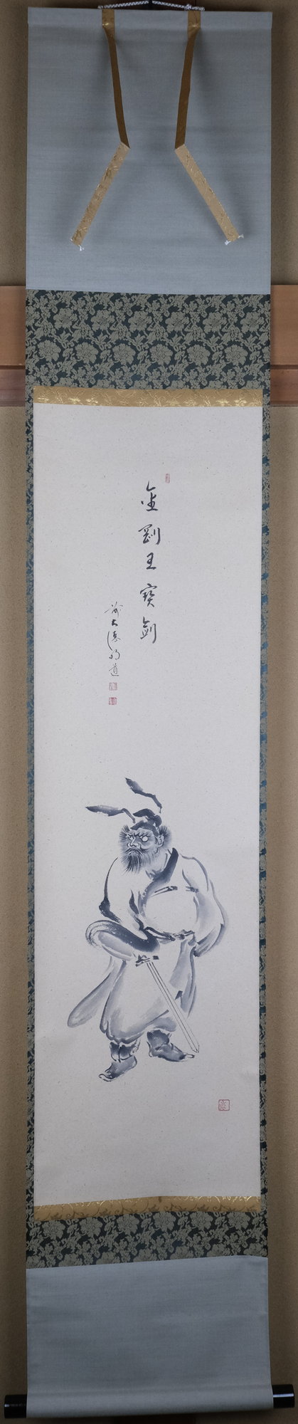 【出物】 掛軸 鍾馗画賛 「金剛王宝剣」 戸上明道