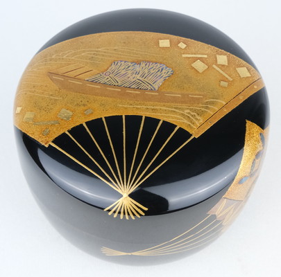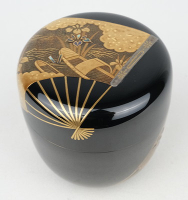 【出物】 扇面蒔絵黒棗内銀 前端春斎