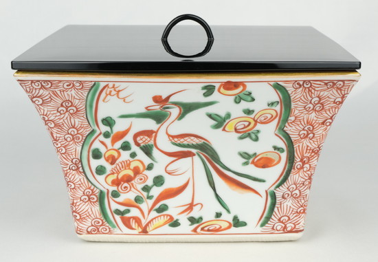 【出物】 赤絵鳳花文四方水指 5代三浦竹泉