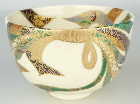 【出物】 色絵束ね熨斗画茶碗 清閑寺窯(杉田祥平)